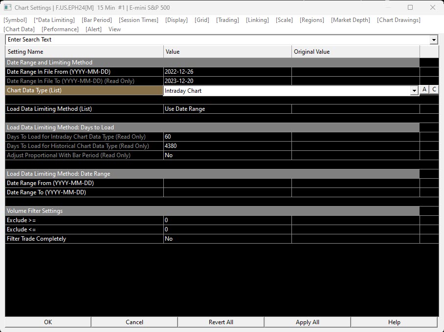 Hello, I am a "11-Integrated Advanced subscriber". With this subscription, I believe I am eligible to get Historical Intraday Data. I also activated "Denali: CME non-professional top-of-book" for CME Data, specifically /ES (ES Mini). For the last 4 yrs, I am getting real time data through CQG WebAPI. I've been trying to get the intraday data from 01-Oct-2020 but I am unable to get it. I changed the chart settings to start from 01-Oct-2020, but it is automatically flipping it to the last one year data. I deleted and redownloaded the data but it is of no use. Please find attached the screenshots of Chart Settings and Data settings. Could you advice what settings I need to do in-order to retrieve the intraday /ES data from 01-Oct-2020? Regards, Sat |