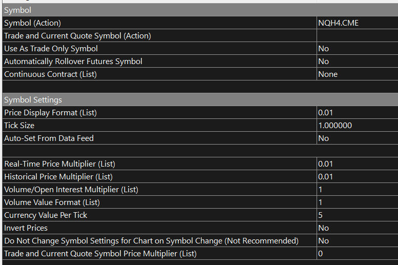 We see you have the Tick Size set to 1.00 and the Combine Increment in Ticks is set to "1". Can you please try setting the Tick Size to "0.25" and the Combine Increment In Ticks to "4". Let us know if the problem persists or not. If you have a reason to have the tick size set at 1.00 then after you try the above, go ahead and change back (unless the above resolves the issue and you then want to keep it like this). For the most reliable, advanced, and zero cost futures order routing, use the Teton service: Sierra Chart Teton Futures Order Routing |