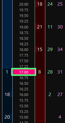 Sorry, not volume by price. I meant the numbers bars chart. I could set the tick size to 1.00 and it will give me the combined recent bid and ask on the NQ.