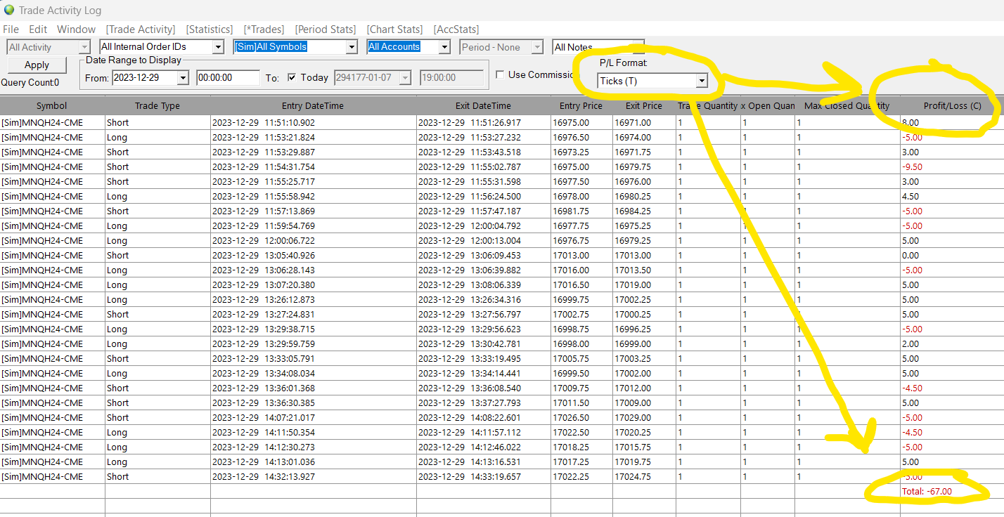 Refer to: Trade Activity Log: Profit/Loss Display Format Sierra Chart Support - Engineering Level Your definitive source for support. Other responses are from users. Try to keep your questions brief and to the point. Be aware of support policy: https://www.sierrachart.com/index.php?l=PostingInformation.php#GeneralInformation For the most reliable, advanced, and zero cost futures order routing, use the Teton service: Sierra Chart Teton Futures Order Routing |