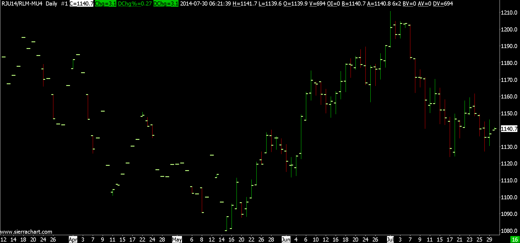 I am using OEC data. I have no problem getting daily bars for ESU4.DLY or NQU4 daily. I cannot obtain and download daily bars for Russell 2000 futures. I want RLM-MU4 daily bars. I have no problem with intraday bars. Any suggestions Pls Regards |