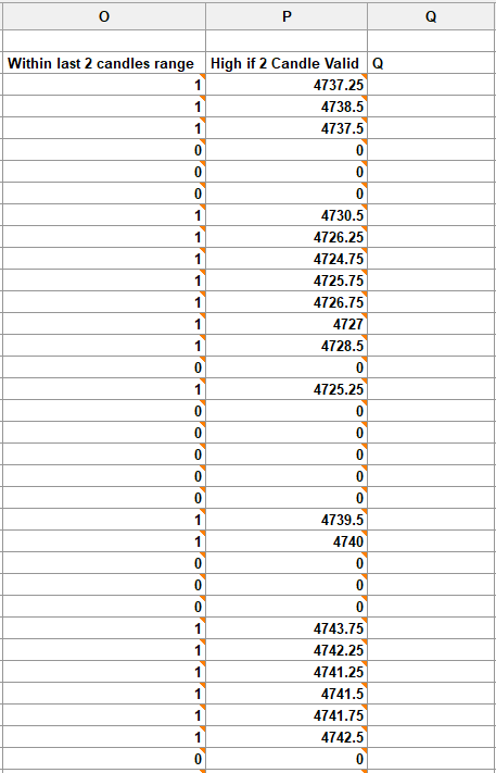 I'm trying to develop a formula to find the maximum of column P, only until the next 0