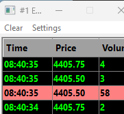 Hello Last year I wrote an ACSIL study which collects some time and sales data. This study does no longer work correctly. It seems something happened to the time and sales data accessed by ACSIL. The prices of Bid/Ask/Price for the symbol ESZ23_FUT are by a factor of 100 larger. Instead being 4405.50 it is 440550.00. The prices in the time and sales window are correct. Software version: 2580 64-bit c_SCTimeAndSalesArray time_sales; sc.GetTimeAndSales(time_sales); for (int ts_index = 0; ts_index < time_sales.Size(); ++ts_index) { double Price{ time_sales[ts_index].Price }; double Bid{ time_sales[ts_index].Bid }; double Ask{ time_sales[ts_index].Ask }; sc_log.Format("ts_index: %d, Price: %f, Bid: %f, Ask: %f", ts_index, Price, Bid, Ask); sc.AddMessageToLog(sc_log, 0); } Output: Chart: Replay 1.00X: ESZ23_FUT_CME [C] 1.25 Range #1 | Study: TSP-Sentiment | ts_index: 3999, Price: 440575.000000, Bid: 440550.000000, Ask: 440575.000000 Chart: Replay 1.00X: ESZ23_FUT_CME [C] 1.25 Range #1 | Study: TSP-Sentiment | ts_index: 3975, Price: 440575.000000, Bid: 440550.000000, Ask: 440575.000000 Chart: Replay 1.00X: ESZ23_FUT_CME [C] 1.25 Range #1 | Study: TSP-Sentiment | ts_index: 3976, Price: 440575.000000, Bid: 440550.000000, Ask: 440575.000000 Chart: Replay 1.00X: ESZ23_FUT_CME [C] 1.25 Range #1 | Study: TSP-Sentiment | ts_index: 3977, Price: 440575.000000, Bid: 440550.000000, Ask: 440575.000000 Chart: Replay 1.00X: ESZ23_FUT_CME [C] 1.25 Range #1 | Study: TSP-Sentiment | ts_index: 3978, Price: 440575.000000, Bid: 440550.000000, Ask: 440575.000000 Chart: Replay 1.00X: ESZ23_FUT_CME [C] 1.25 Range #1 | Study: TSP-Sentiment | ts_index: 3979, Price: 440575.000000, Bid: 440550.000000, Ask: 440575.000000 Chart: Replay 1.00X: ESZ23_FUT_CME [C] 1.25 Range #1 | Study: TSP-Sentiment | ts_index: 3980, Price: 440575.000000, Bid: 440550.000000, Ask: 440575.000000 Chart: Replay 1.00X: ESZ23_FUT_CME [C] 1.25 Range #1 | Study: TSP-Sentiment | ts_index: 3981, Price: 440575.000000, Bid: 440550.000000, Ask: 440575.000000 Chart: Replay 1.00X: ESZ23_FUT_CME [C] 1.25 Range #1 | Study: TSP-Sentiment | ts_index: 3982, Price: 440575.000000, Bid: 440550.000000, Ask: 440575.000000 Chart: Replay 1.00X: ESZ23_FUT_CME [C] 1.25 Range #1 | Study: TSP-Sentiment | ts_index: 3983, Price: 440575.000000, Bid: 440550.000000, Ask: 440575.000000 Chart: Replay 1.00X: ESZ23_FUT_CME [C] 1.25 Range #1 | Study: TSP-Sentiment | ts_index: 3984, Price: 440575.000000, Bid: 440550.000000, Ask: 440575.000000 Chart: Replay 1.00X: ESZ23_FUT_CME [C] 1.25 Range #1 | Study: TSP-Sentiment | ts_index: 3985, Price: 440575.000000, Bid: 440550.000000, Ask: 440575.000000 Chart: Replay 1.00X: ESZ23_FUT_CME [C] 1.25 Range #1 | Study: TSP-Sentiment | ts_index: 3986, Price: 440575.000000, Bid: 440550.000000, Ask: 440575.000000 Chart: Replay 1.00X: ESZ23_FUT_CME [C] 1.25 Range #1 | Study: TSP-Sentiment | ts_index: 3987, Price: 440575.000000, Bid: 440550.000000, Ask: 440575.000000 |