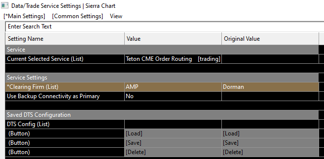 Hello, I am trying to add AMP (already have Dorman) but have not been successful. On the AMP website I can see service requests for either the Teton or Teton routing only. (Please see screenshot below). I am assuming one of those two need to be enabled vs what is assigned now which shows CQG (no date, routing only). I tried adding my AMP account to SC through the Data/Trade Service Settings but it did not do anything and the account did not get listed in the drop down menu for the Trading panel. Please advise. |