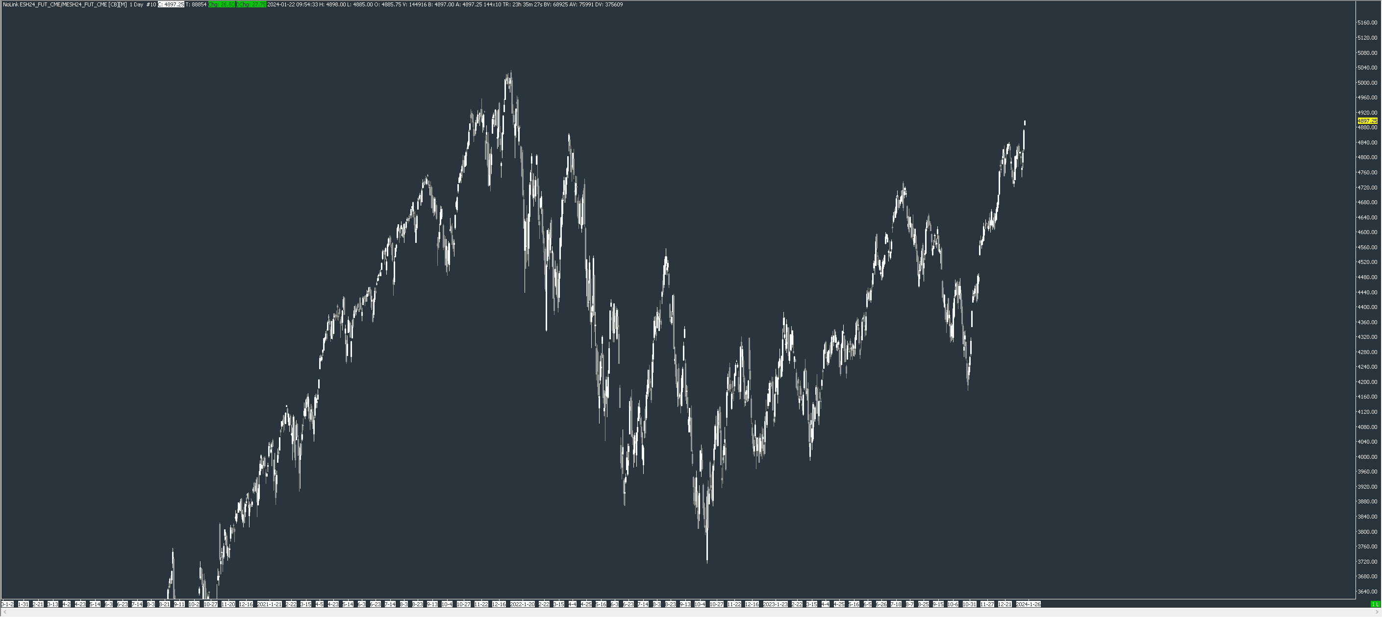 My charts are showing incorrect historical data. If you look at the ES chart you can see that data from around end of 2021 is showing as ATH and current prices are lower which is incorrect. I tried to delete and redownload/recalculate charts but it's still showing the same. Any suggestions? Contract is continuous and back adjusted Chartbook and screenshot attached. |