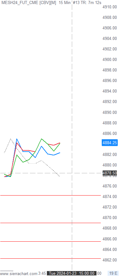 Hi, I'm using "Study price overlay" with "line on close" to compare few symbols on one chart. I have set each study scale to "Independent", when I move chart to the left or right, symbol lines are expanding and contracting - that is unusable, because it gives different view. I have tried different scale ranges for chart but it didn't work. Is there any solution to stop symbol lines expanding and contracting? Thanks you Tom Example (not as bad as usual, notice red and green lines, also dotted line is completely shifted): https://www.sierrachart.com/image.php?Image=1706038669253.png https://www.sierrachart.com/image.php?Image=1706038703944.png Date Time Of Last Edit: 2024-01-23 19:41:56