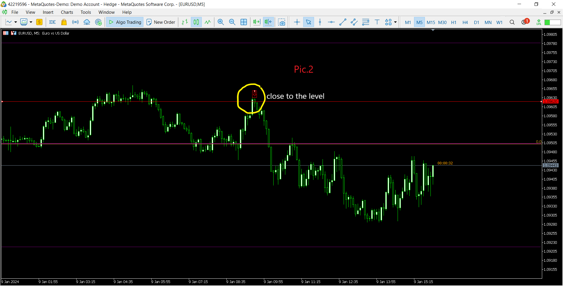 Here are 3 pics, I draw a line and if the 5min candle closes exactly or around the level and the volume is higher than usual a signal is generated. Thank you
