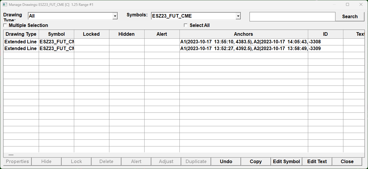 Hello I don’t know if it is by purpose or a bug. The fonts in the Manage Drawings Window of the version 2591 are IMHO too fat/large. Please have a look at the two screenshots. One of Sierra Chart Version 2586 and one of version 2591. Kind Regards |