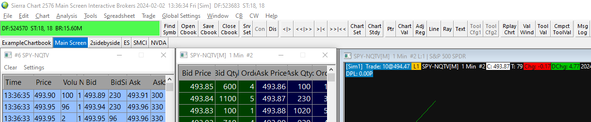 I have a Denali package 11 Scratching my head on this one, for February I routed my IBKR to Sierra chart as per the setup instructions for market data feed via IBKR. It worked fine yesterday but I have a feeling now my Nasdaq totalview subscription from January was still working. Regardless, my issue this morning is that ES is giving me live data but SPY, Level 2/ time and sales on SPY are delayed. On my IBKR I can pull up SPY chart and the data is live so I don't think it is not a market data subscription package issue. Anyone can shed any light on what the issue maybe? Date Time Of Last Edit: 2024-02-02 16:47:39