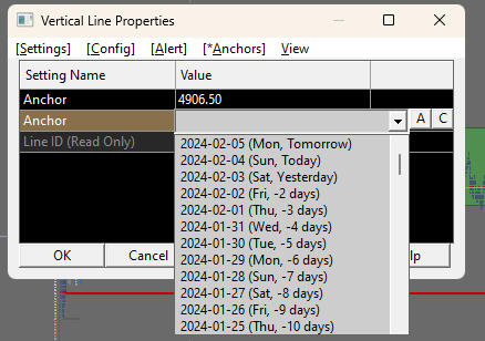 We are correcting the issue with the Anchor fields. We apologize for that. What is the issue with the Line Width field? If the problem is that the plus and minus buttons do not immediately cause the width to change, that will be resolved. Sierra Chart Support - Engineering Level Your definitive source for support. Other responses are from users. Try to keep your questions brief and to the point. Be aware of support policy: https://www.sierrachart.com/index.php?l=PostingInformation.php#GeneralInformation For the most reliable, advanced, and zero cost futures order routing, use the Teton service: Sierra Chart Teton Futures Order Routing |