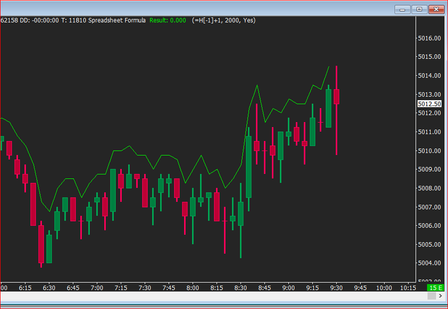 The attached pic uses this formula, =H[-1]+1, with a Displacement of -1 This plots a line 1 point above the previous High. Use this formula to reference ticks instead: =H[-1]+TICKSIZE*4 |