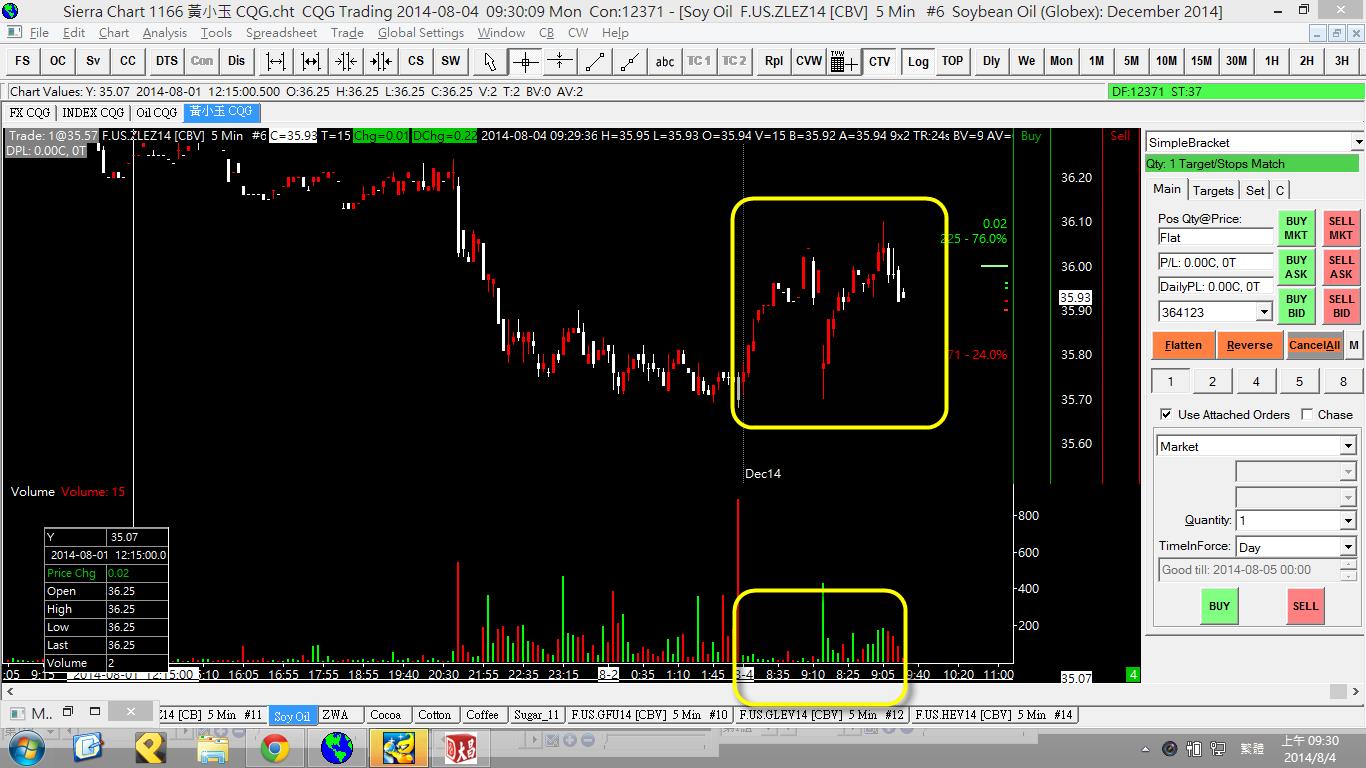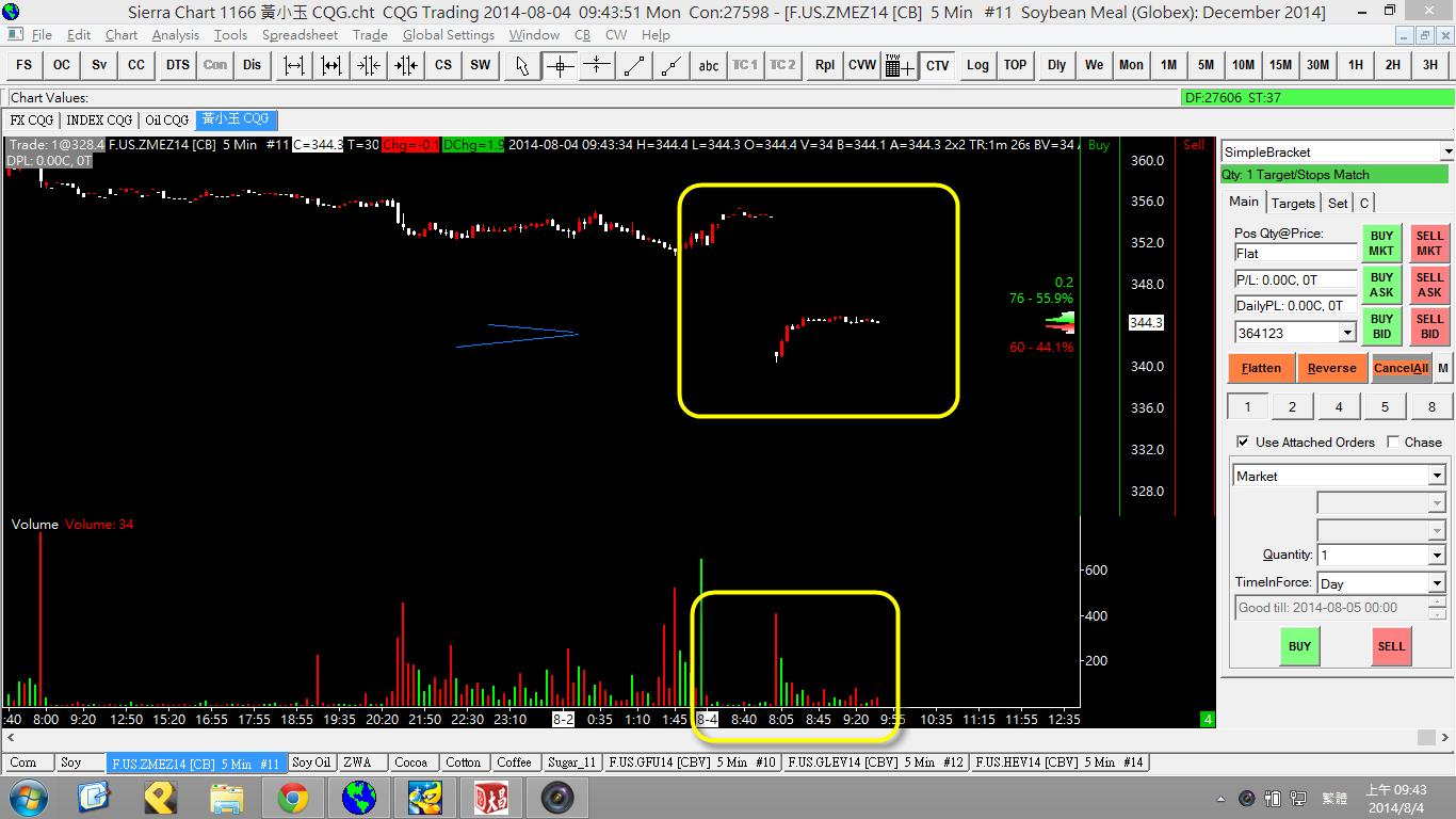 Thanks for help, soybean meal and soybean oil is okay now! The problem of F.US.QFAU14 chart is the wrong data time, as you can see in the 1 sec time frame, data time 09:17:34 happen before 09:16:34, Each time to get the correct chart ,I need to Delete all data & download again and again, because next new bar usually start at the wrong time. |