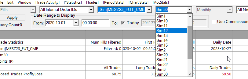 Feature Request: On Trade Activity Log, sort sim accounts numerical