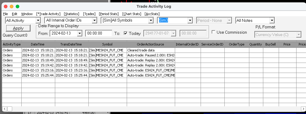 Run the replay again and when the order should occur, but does not, then look in your "Trade >> Trade Service Log" to see if there is any information in there on what may have occurred. Also, check your Message Log for any errors in there related to this at that time. You can post both of these to this thread for us to look at, if you like. For the most reliable, advanced, and zero cost futures order routing, use the Teton service: Sierra Chart Teton Futures Order Routing |