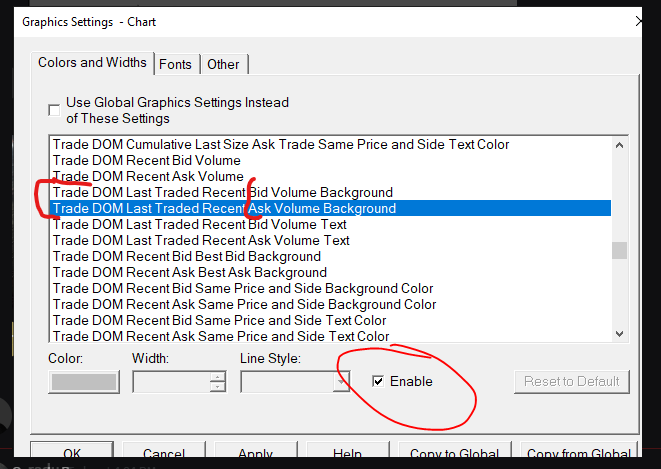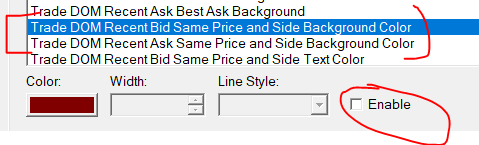 Hello everyone, How does one get the DOM to display both the recently traded at bid/ask highlighted at the same time vs just the last traded either bid or ask? - I want both to show and be highlighted like the DOM on the last side - I am sure it is something simple, but I am running in loops through the documentation... |