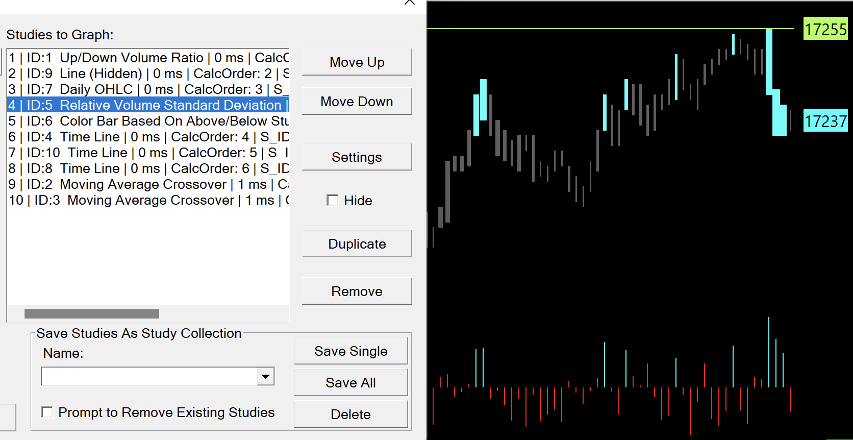 Does your "Color Bar Based on Above/Below Study" work properly? From what we see in your image, it is setup to reference itself, so there is not a way for it to actually work. Let's start at the beginning. You are using the "Relative Volume Standard Deviation" study to look at something. What exactly do you want to compare the results of the "Relative Volume Standard Deviation" against? For the most reliable, advanced, and zero cost futures order routing, use the Teton service: Sierra Chart Teton Futures Order Routing |
