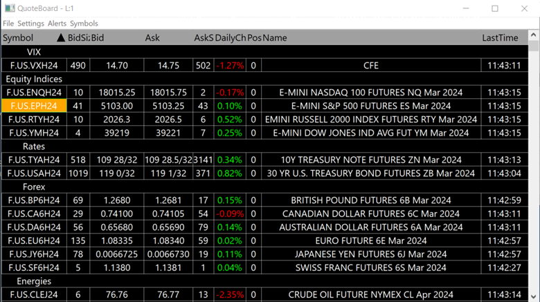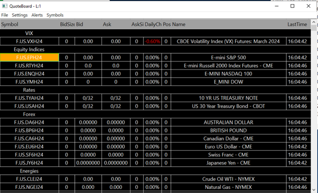 We have passed the issue of the Quote Board to our secondary support. But we wanted to point out that you have activated the "Professional" exchange options. If you are not a professional trader (i.e. you trade other people's money) and you are not listed on the FINRA database for brokers, then you should qualify for the non-professional exchanges, which are much cheaper. Unfortunately, we can not give refunds for the exchanges, as the exchanges do not give refunds, but this is something that can be solved for next month, if you want. For the most reliable, advanced, and zero cost futures order routing, use the Teton service: Sierra Chart Teton Futures Order Routing |