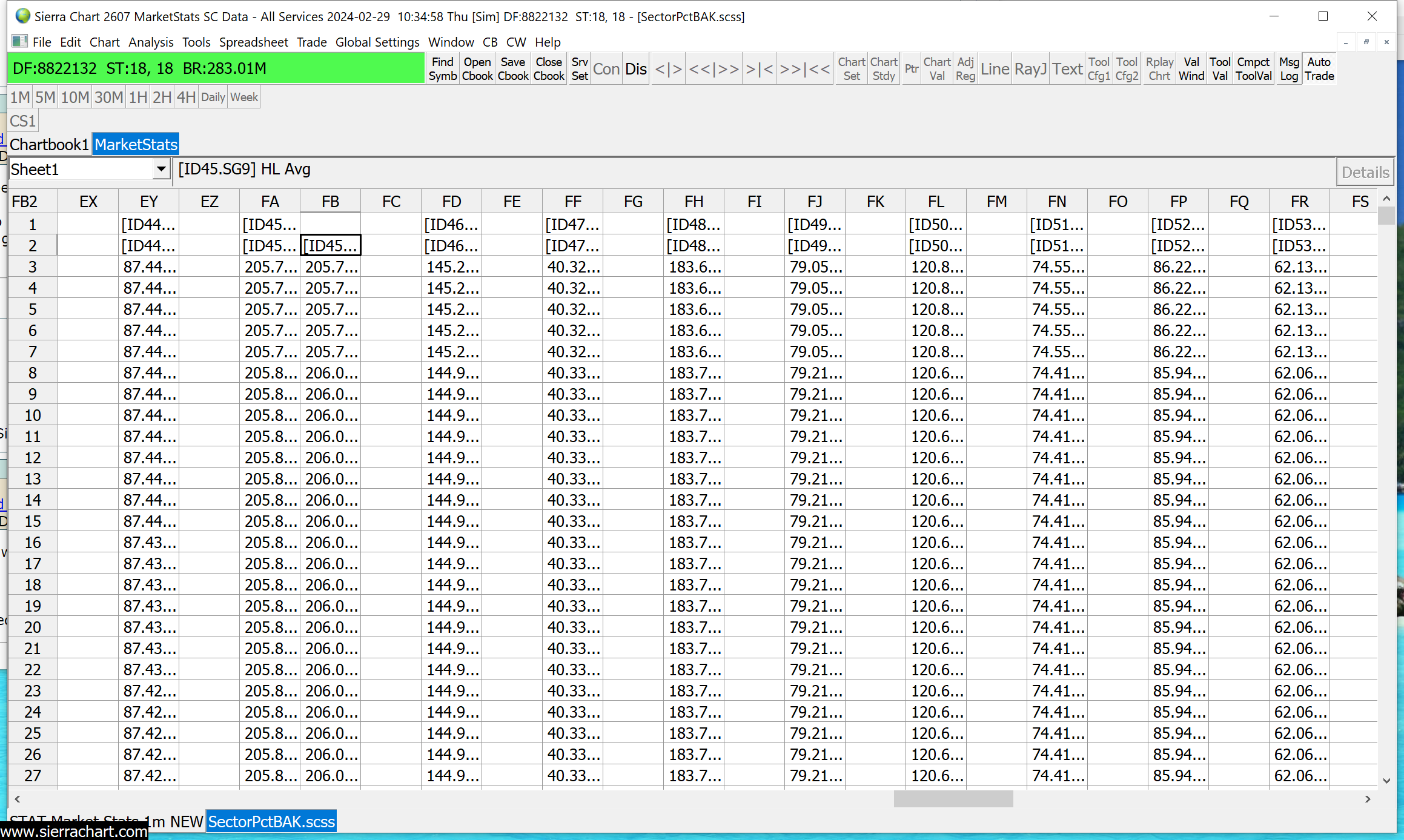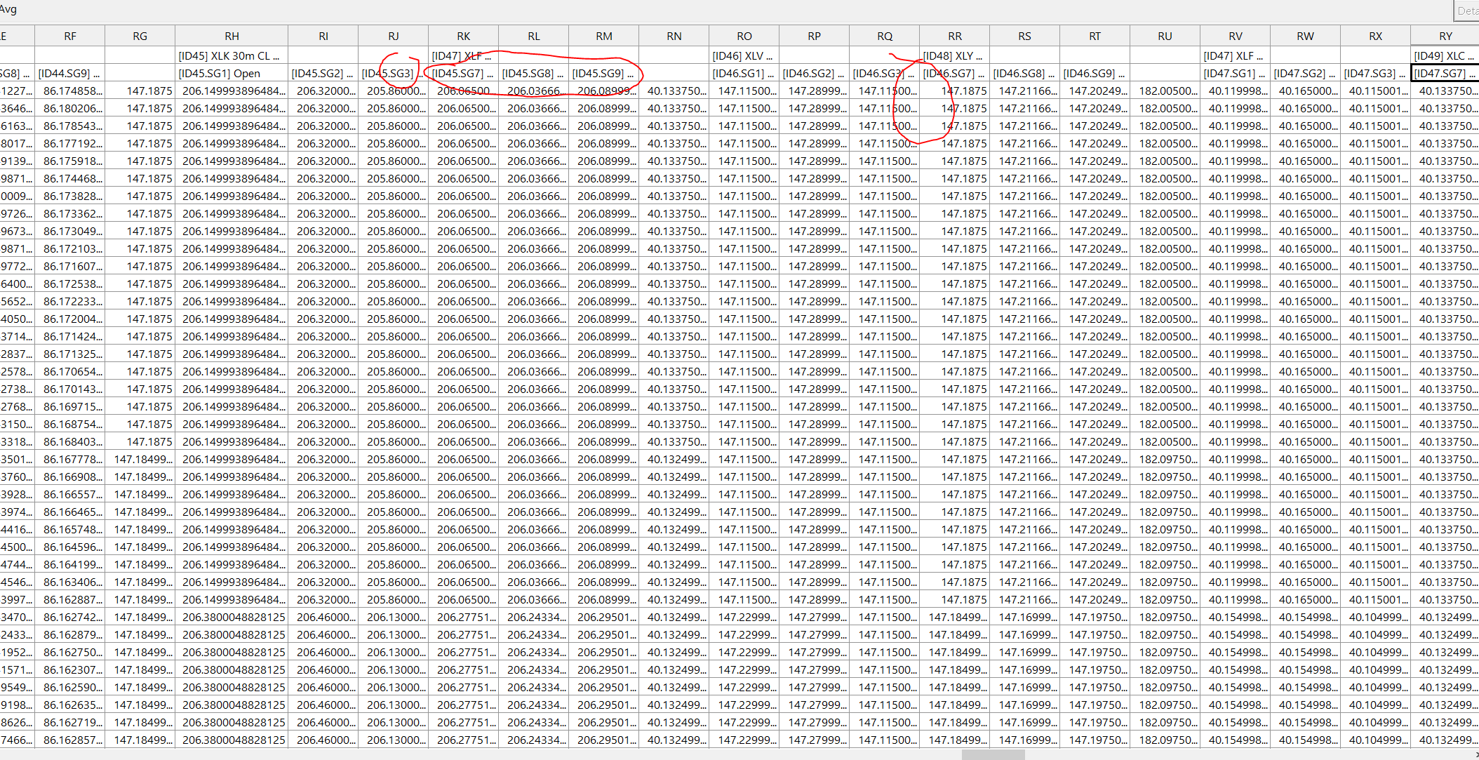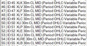 Very bizarre creating spreadsheet study to create a Market Stats to help my trading and as you can see added 30m Period OHLC Variable Period to use in spreadsheet and many of the SG values aren't in spreadsheet. For Example ID45 for XLK tech sector it only shows SG1, SG2, SG3 doesn't have SG4 the close or SG9 the Midpoint I need. Others like for Financials ID47 its missing SG1-SG6. I can't figure this out. |