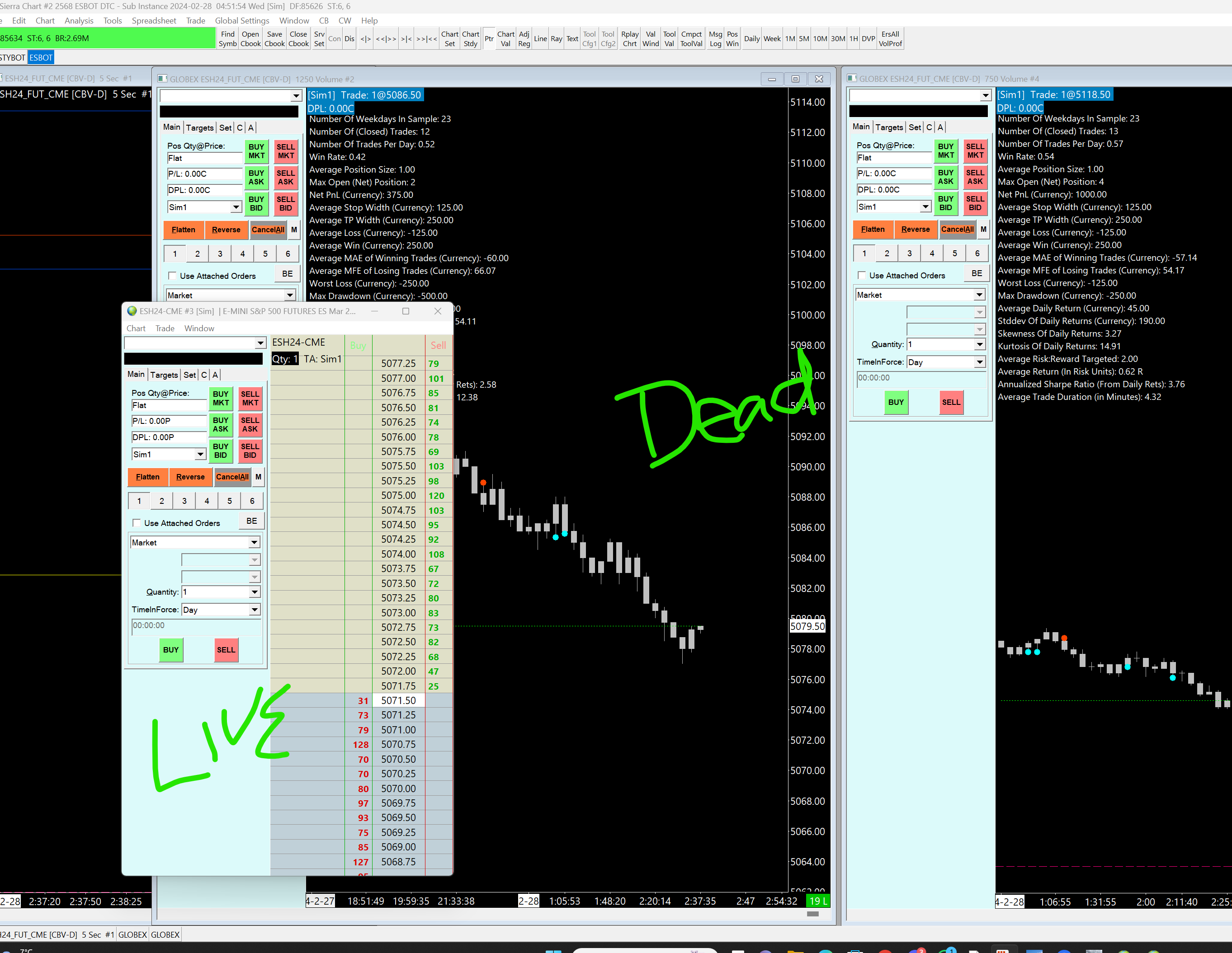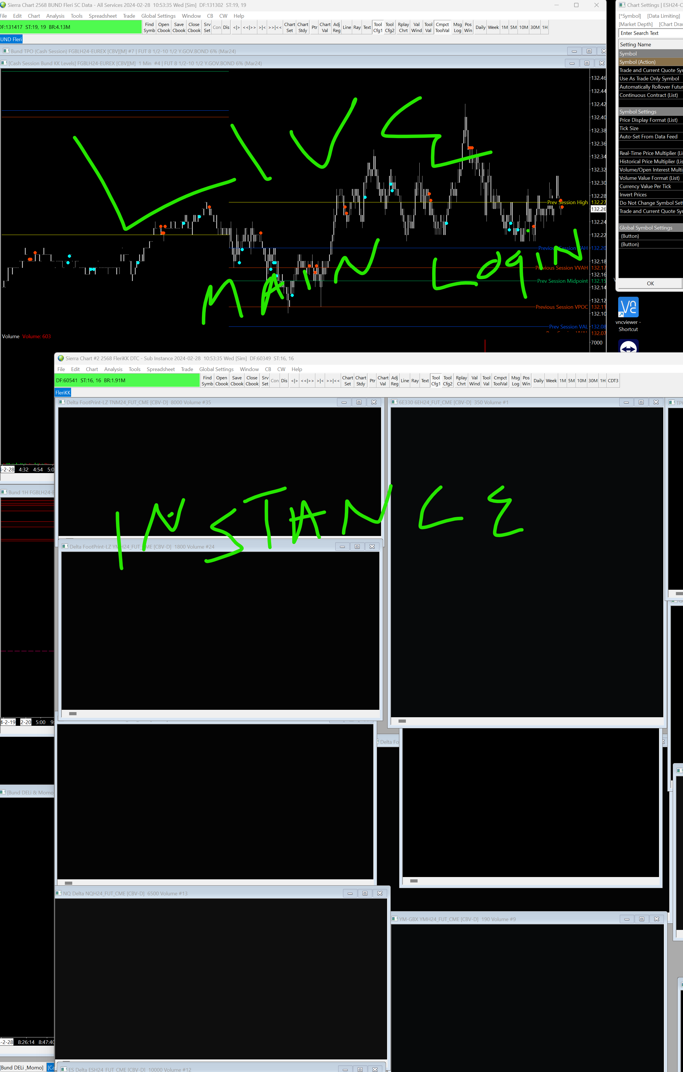 Hi SC, I have a big issue.-suddenly without warning none of my instances will not load data nor work. I suddenly looked over and thought What??? My main login pages in both Sierra Chart Teton and SC All Service are working perfectly, but now NO data will update in the instance's charts, BUT a dom works that I pull up in the Teton instance. Please see the example attached. I was told by Fleri in the past when my charts would seize up to go and delete all the scid files and restart. Please see the second attached screenshot of the All Service(which I deleted all the scid files) with working bund in the main log-on, and then the not loading of anything in the charts. So again, both main longing pages of All Service and Teton give me data as normal, but NONE of the instances in either service are updating. You see the boxes on top are green Please advise and thank you for helping me as I am totally incapacitated right now. Karen |