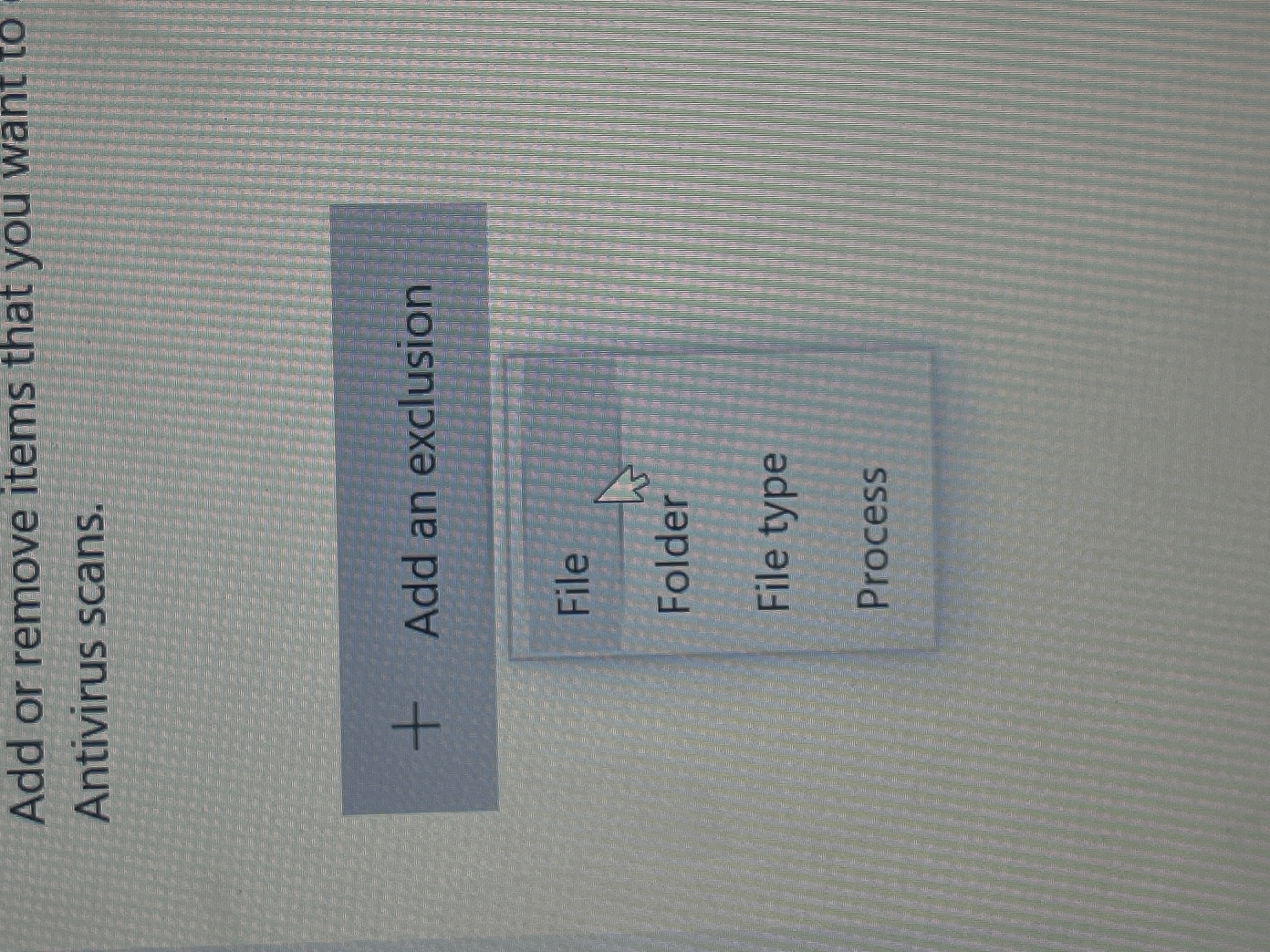 You can find this on any serach engine within 5 seconds, but here is a link to instructions anyways. https://support.microsoft.com/en-gb/windows/add-an-exclusion-to-windows-security-811816c0-4dfd-af4a-47e4-c301afe13b26 |