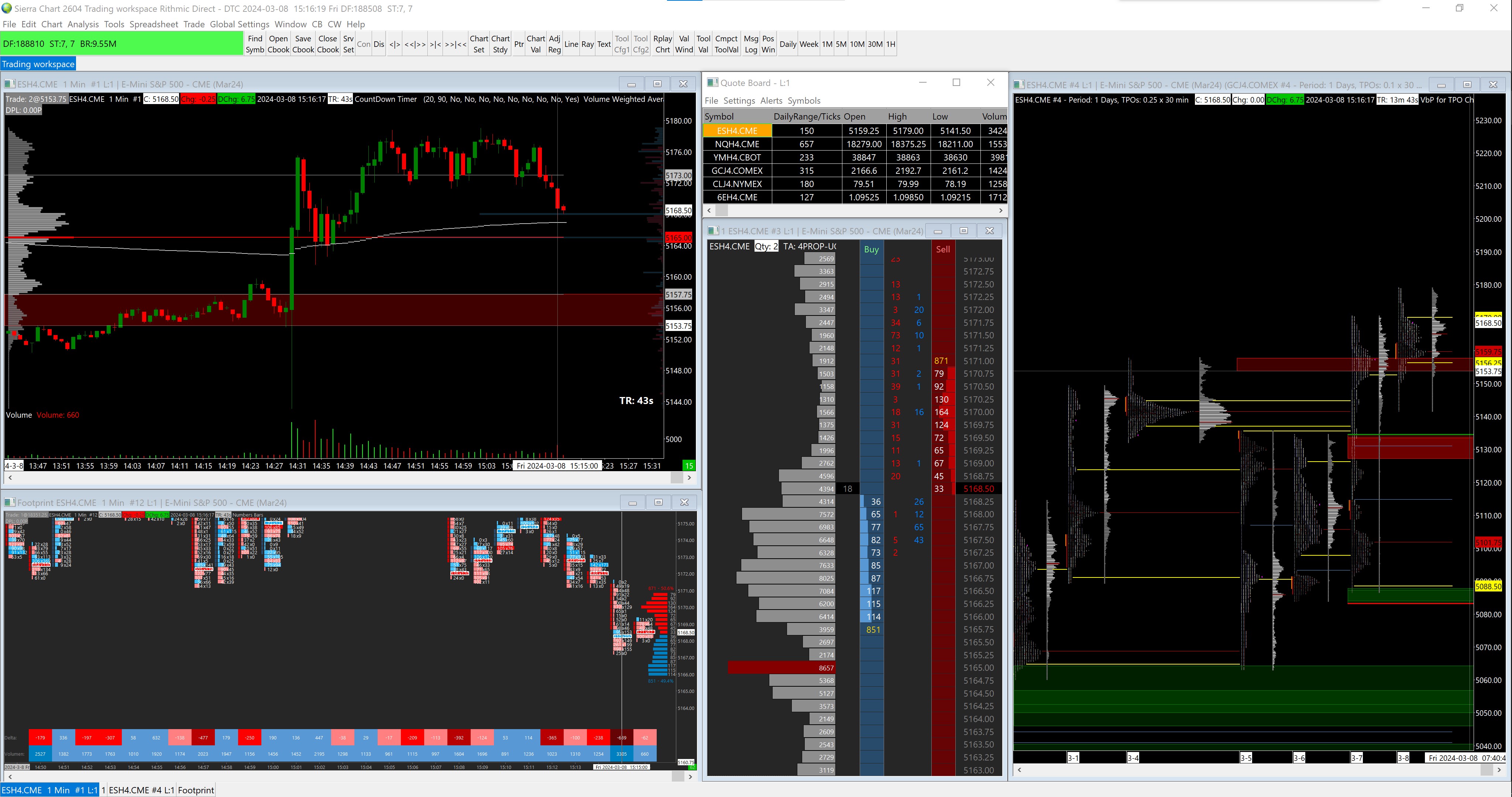 here my chart setup on the multiple monitors. this is my sierra setup (actually beeing in ES that's why you can't see the PnL of my GC trade in the trade activity log, shown in the messege above "Screenshot GC") |