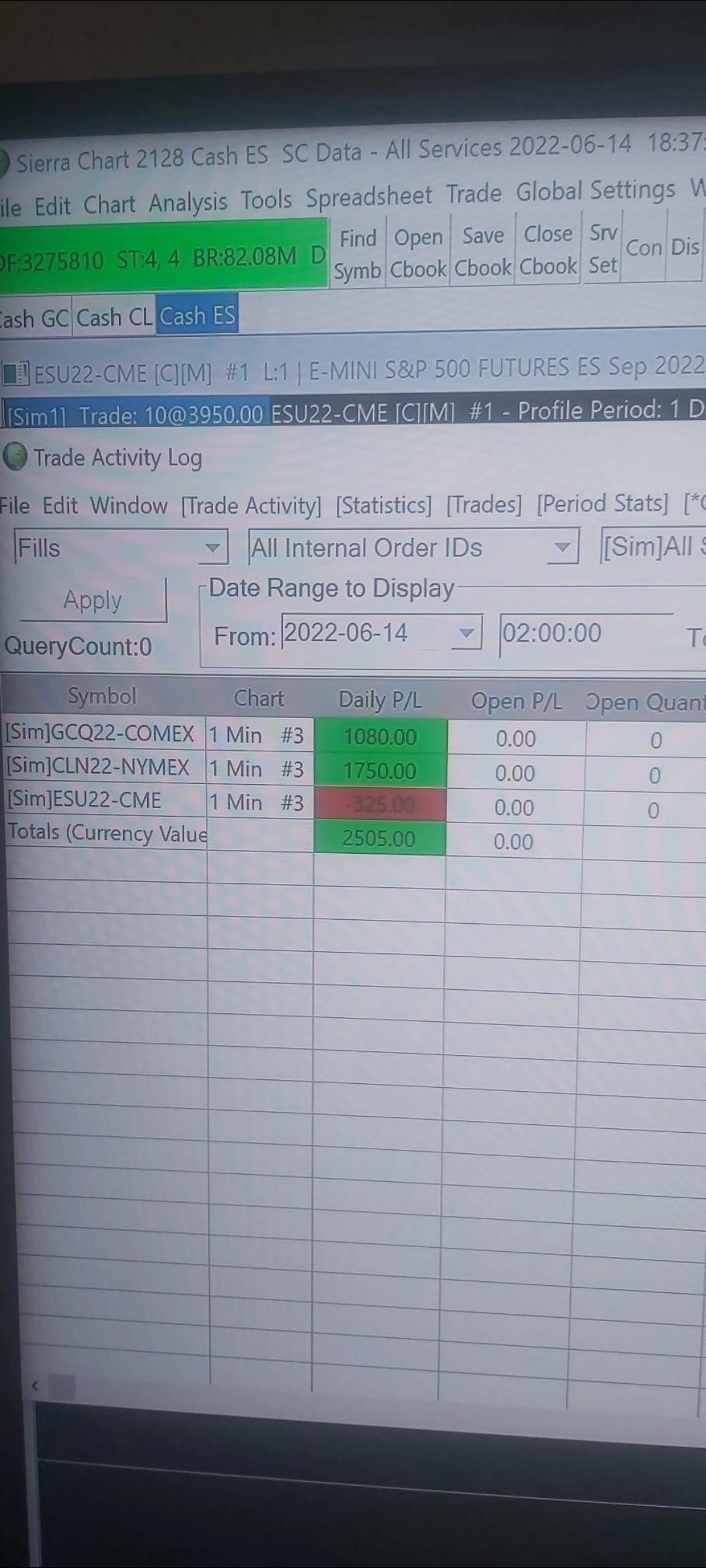 to underline my example. some minutes ago, id did a trade on GC. when i opened GC there is no problem. when i switch to ES it looks like these (have a look to the uploaded screenshots). when it worked well, i could shwitch to ES and it should shown me the same like when i had GC open |