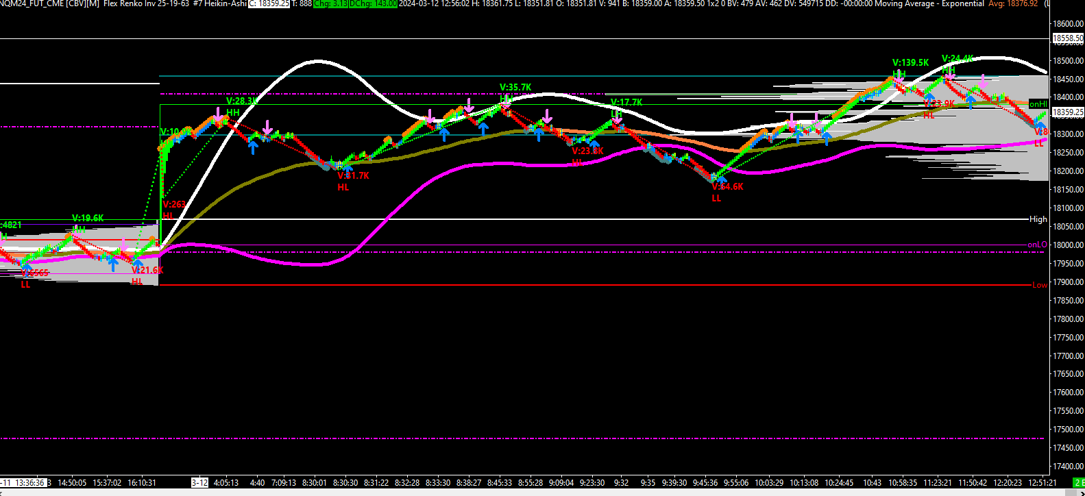 Hello John, attached is the picture how you requested it, also included the renko chart if that helps. I have New York time zone applied and I took these pics at 12:54 pm and 12:56 PM New York EST |