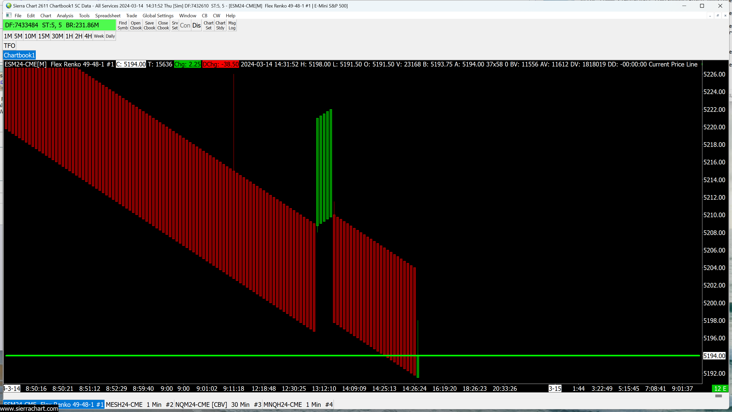 3 Renko Charts 15-14-1 24-24-1 49-48-1 I added a 5 Minute chart for compassion Current price line inaugurate on all yet current price show highlighted in White om Price scale! Therefore Current Price Line is not current! Please fix Current Price Line Indicator Thanks |
