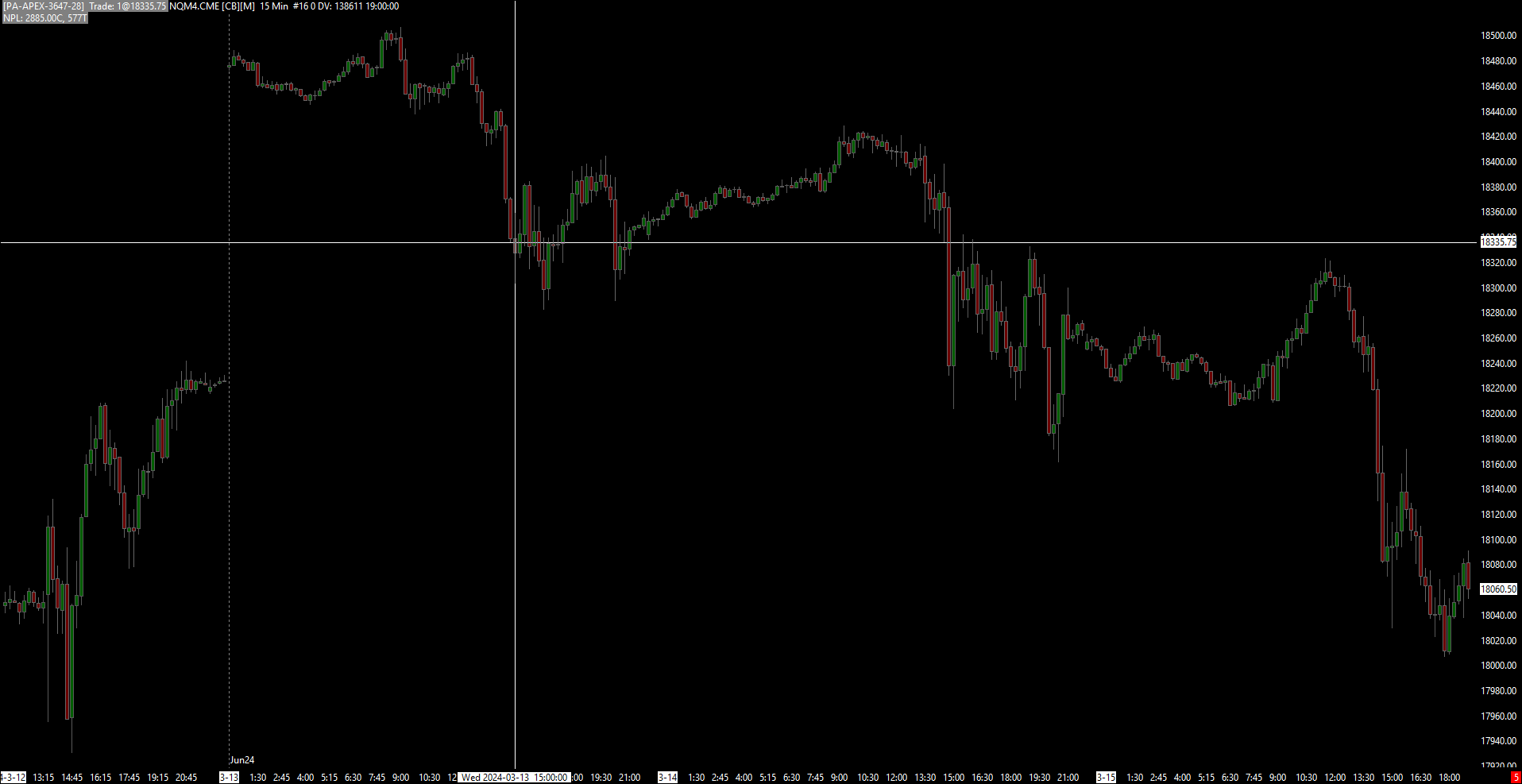 First, you are running an old version of Sierra Chart it is absolutely 100% sign mandatory that you update Sierra Chart. Otherwise, we cannot help you. Instructions: Software Download: Fast Update This is what we see: https://www.sierrachart.com/image.php?Image=1710856314206.png Follow the instructions here: Continuous Futures Contract Charts: Basic Steps to Correct Invalid Back Adjust Amount for Most Recent Transition to New Contract Month And most importantly disable the Use Custom Symbol Settings Values. Sierra Chart Support - Engineering Level Your definitive source for support. Other responses are from users. Try to keep your questions brief and to the point. Be aware of support policy: https://www.sierrachart.com/index.php?l=PostingInformation.php#GeneralInformation For the most reliable, advanced, and zero cost futures order routing, use the Teton service: Sierra Chart Teton Futures Order Routing |