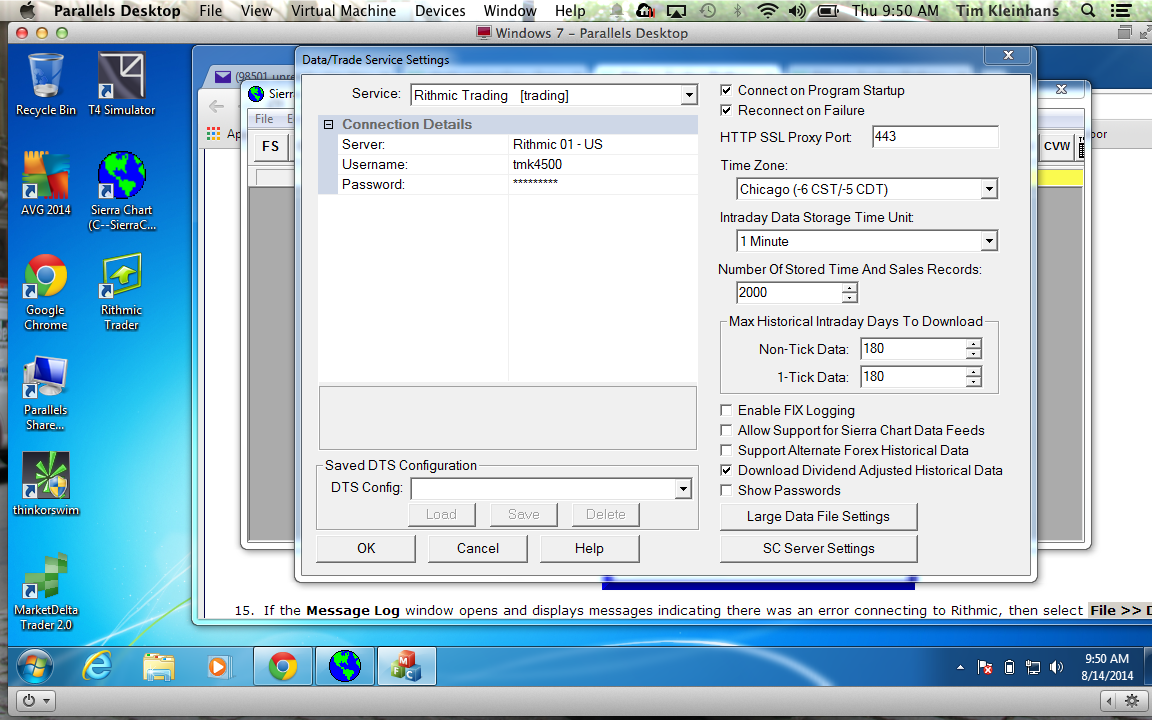 We see you have logged into Sierra Chart within the last three hours. Are you having trouble at this time logging into Sierra Chart? What we mean by this, is do you get past the window which is titled "Sierra Chart (Version) Login"? Instructions say Rythmic 1 is for professionals. Do I need a different server? I'm a non professional. What instructions are you referring to?