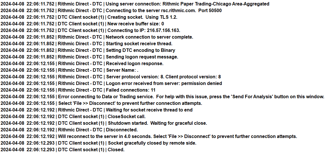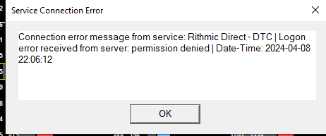 Refer to the following: Rithmic Trading Platform Service: Permission Denied Resolution Procedure For the most reliable, advanced, and zero cost futures order routing, use the Teton service: Sierra Chart Teton Futures Order Routing |