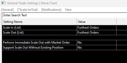 Your screenshots show the opposite: My Chart Settings>Trade Settings are set to Last in first out. Make sure this is set to Yes: Chart Settings: Use Last In First Out Fill Matching (Chart >> Chart Settings >> Trading menu) You also need to refer to: Chart Trading and the Chart DOM: Accurate Entry/Exit State, Fill Matching and Position Quantities Sierra Chart Support - Engineering Level Your definitive source for support. Other responses are from users. Try to keep your questions brief and to the point. Be aware of support policy: https://www.sierrachart.com/index.php?l=PostingInformation.php#GeneralInformation For the most reliable, advanced, and zero cost futures order routing, use the Teton service: Sierra Chart Teton Futures Order Routing |