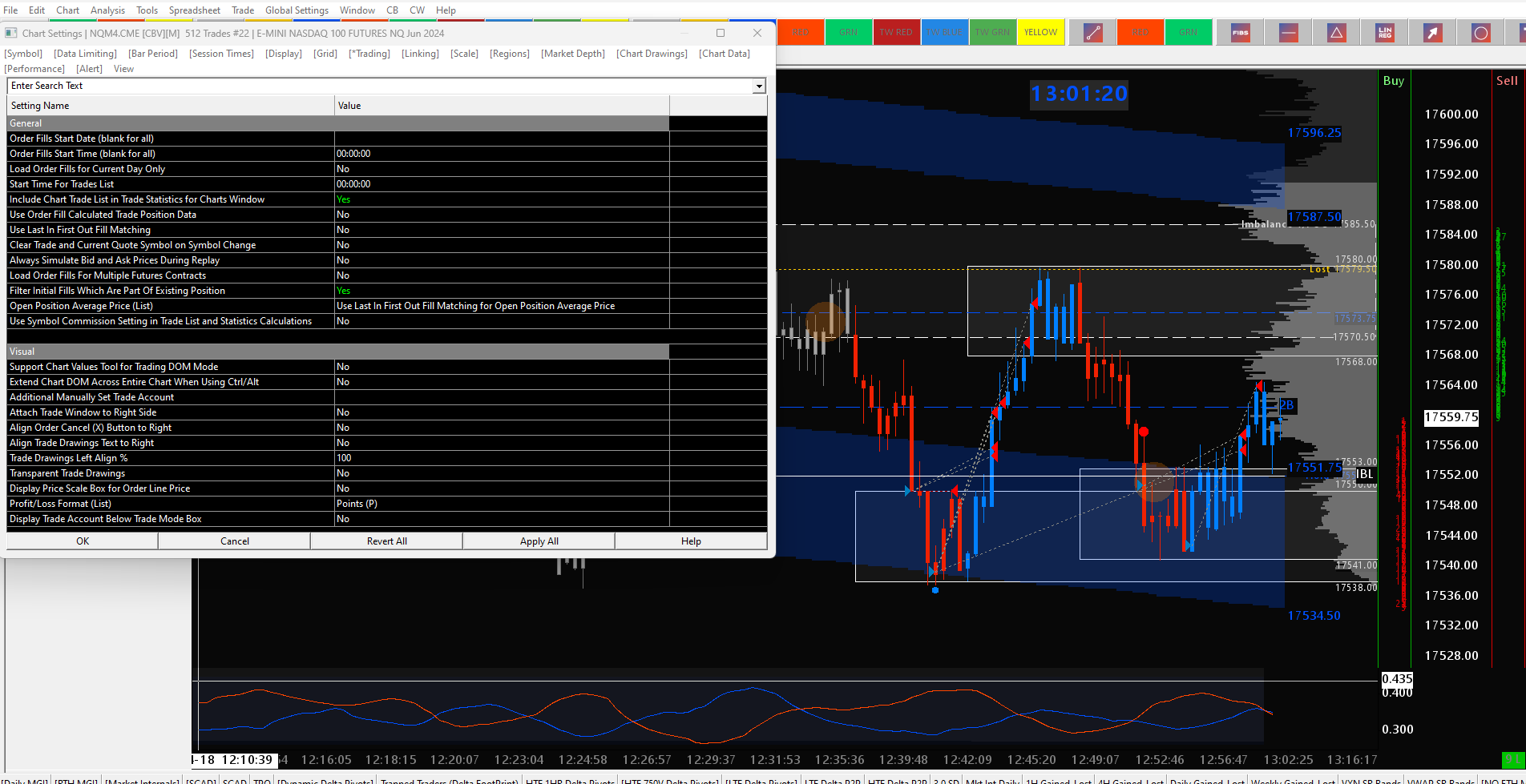 Hello, Is there a way to change the order that the SHOW ORDER FILL LINES are drawn? I ask this because I trade Last in First Out. However the Fill Lines are First in First Out. I have searched and searched to no avail. If you could point me in the right direction, I would appreciate it! My Chart Settings>Trade Settings are set to Last in first out. But When Sierra draws my trades on the chart by posting my entries and exits, and then draws a line connecting those trades, it is still drawing those connecting lines as though I traded it First in First out. Meaning when I select: Show Order Fills, and it draws a line connecting the open and close of a position, it is still drawing those lines as though I was trading First in First out, but my settings are set to Last in First out. It is like 'Show Order Fills' is failing to recognize the Last in First out setting when it is enabled. |