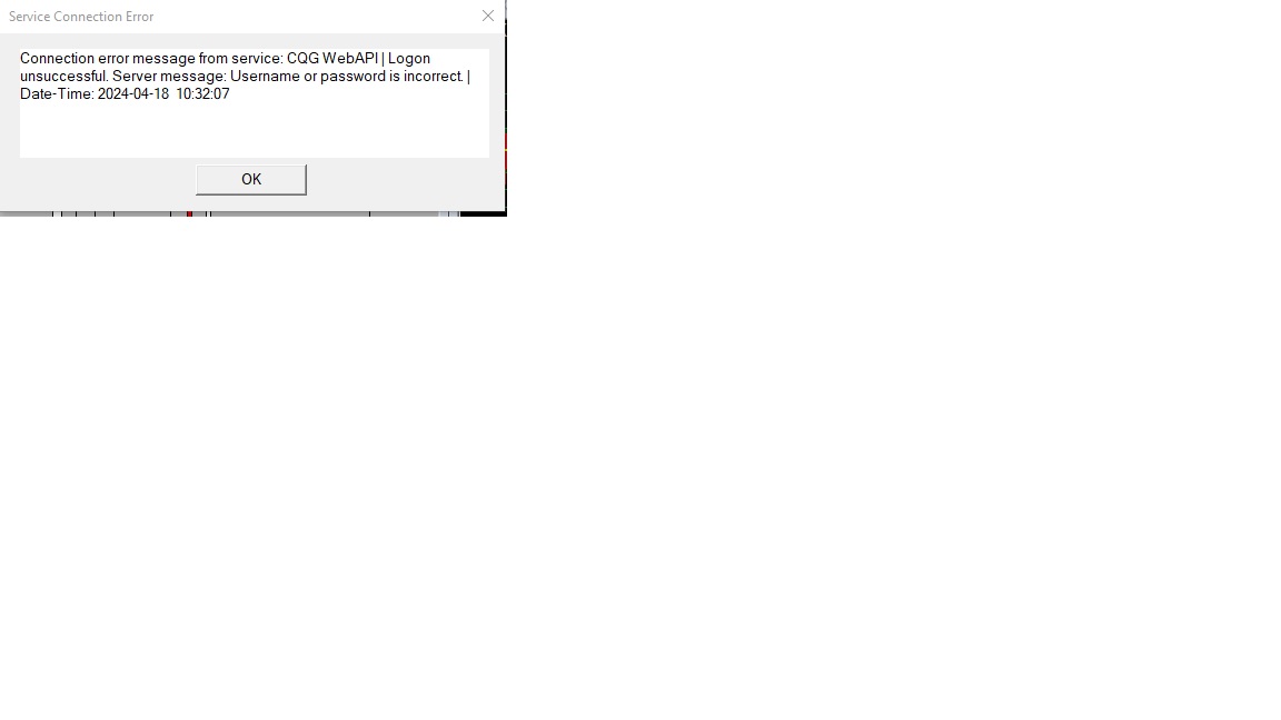 Recently I have problem with login to CQG data. I get server message: Username or password is incorrect. Both are same as I've used before. AMP says it's problem with denali data. Can you confirm?. Btw. I dont have any problems with connecting Denali and Rhitmic on another acc