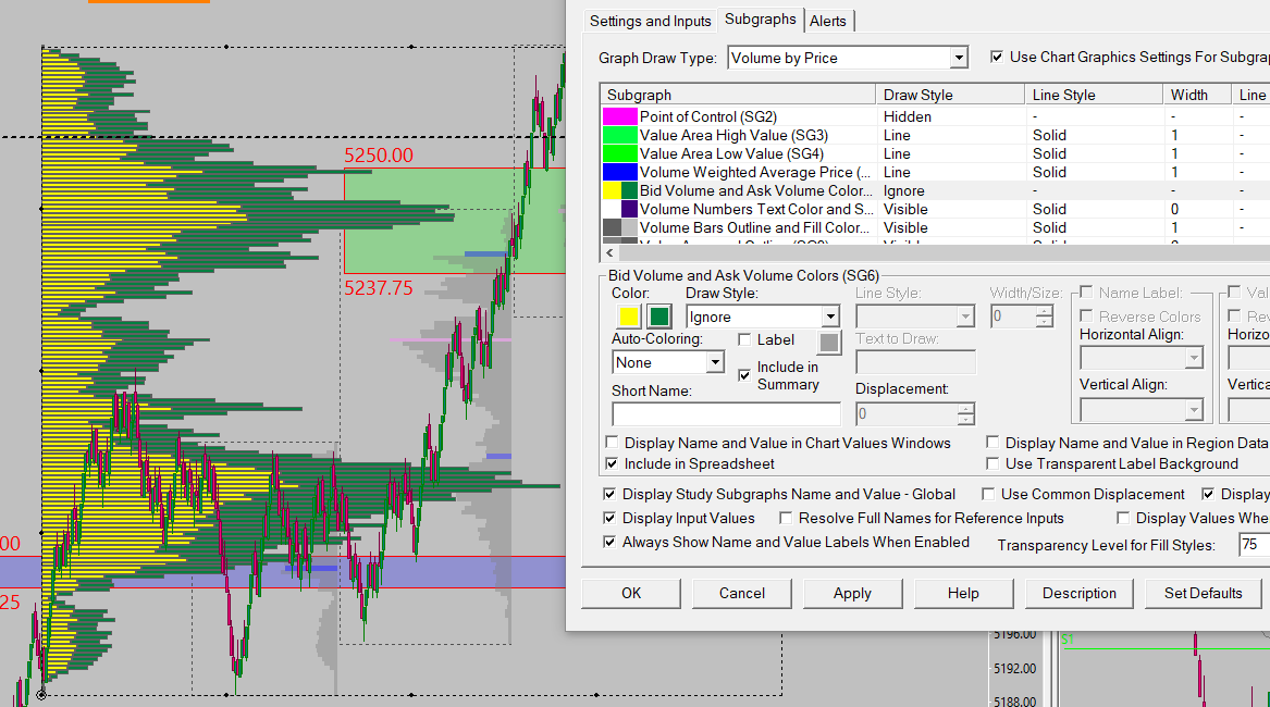 Hi Sierra chart, Checking if the volume by price function is able to be customized for different time frames, e.g. 3 days or e.g. 5 days? More specifically I would like to find the value area high and value area low lines for the chart. This might already be an existing function but I cannot seem to enable it correctly. |