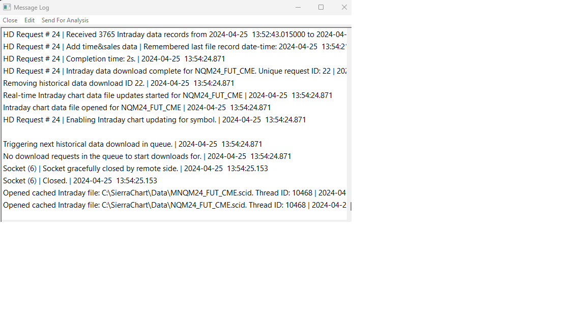 Problem has persisted for the whole week, unable to recieve real time prices system keeps having to download historical data internet working fine on other programs. no webpages open, just sierracharts and discord. please advise. thanks |