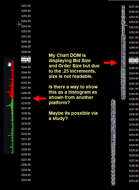 Chart/DOM Bid/Ask Order Size Histogram