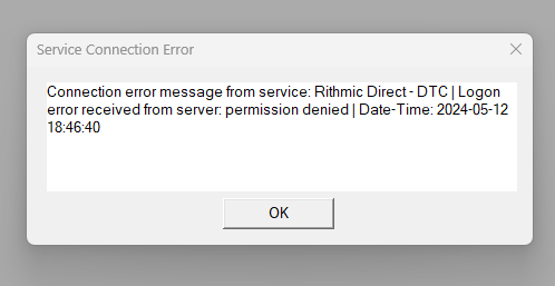 That is a Rithmic error. The information on this can be found at the following link: Rithmic Trading Platform Service: Setup Instructions For the most reliable, advanced, and zero cost futures order routing, use the Teton service: Sierra Chart Teton Futures Order Routing |