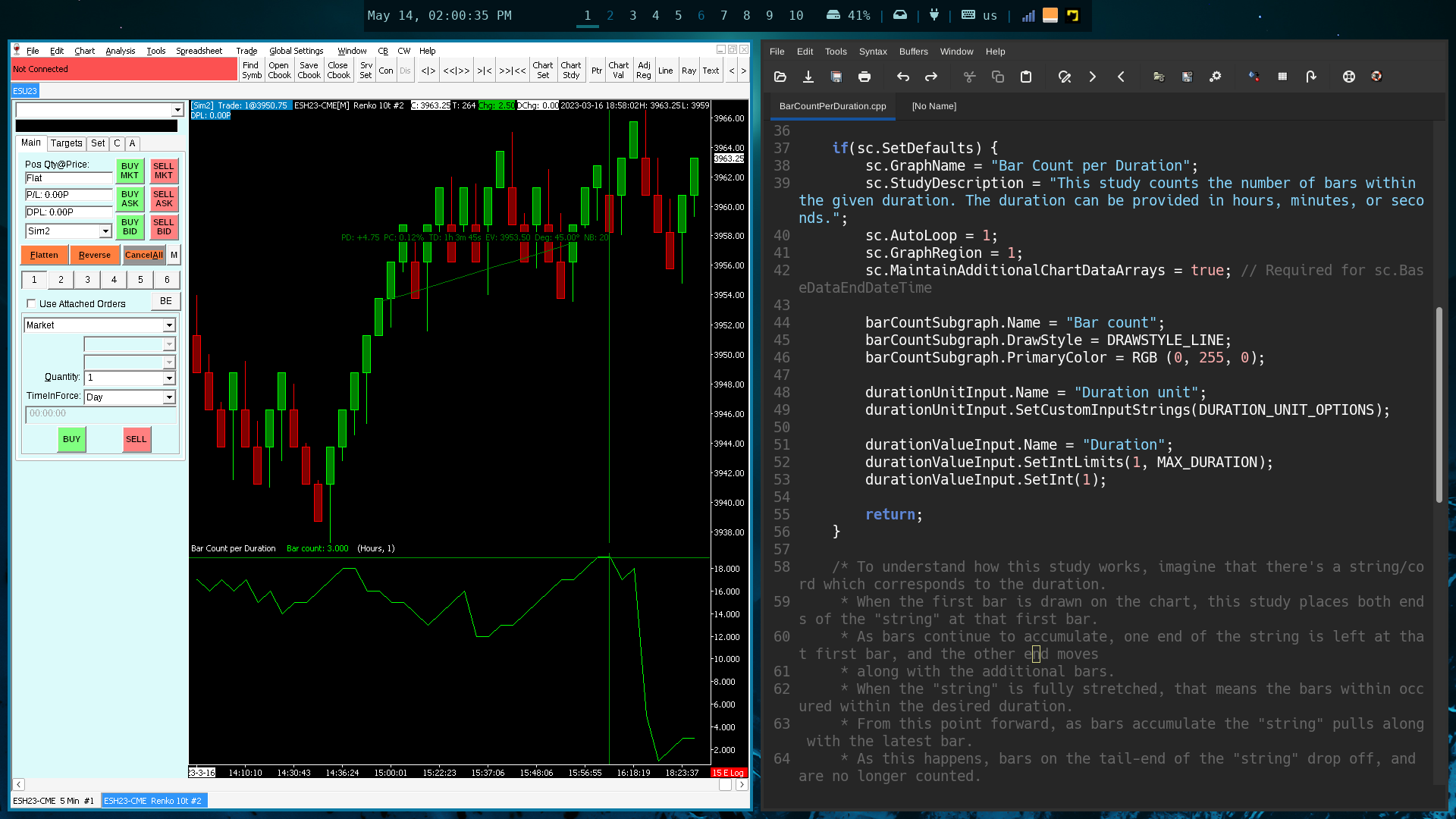Try the study in the following link. You can see the bar counts in the bottom section of the chart; It's in a separate chart region. https://drive.proton.me/urls/1Y0T2TWHRW#5LqlVrBj32PJ I find it quite funny that the screenshot file size is larger than the study DLL itself. |