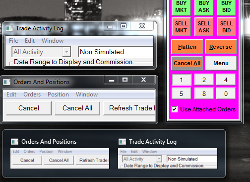 So you are detaching a Trade Window from one of the chart windows which is part of the main Sierra Chart window? We see no reason why this would matter, just wanting to get a better understanding. Sierra Chart uses what is known as a Multiple Document Interface which is not commonly used. So we suspect something is going wrong with that at the operating system level. Sierra Chart Support - Engineering Level Your definitive source for support. Other responses are from users. Try to keep your questions brief and to the point. Be aware of support policy: https://www.sierrachart.com/index.php?l=PostingInformation.php#GeneralInformation For the most reliable, advanced, and zero cost futures order routing, *change* to the Teton service: Sierra Chart Teton Futures Order Routing |