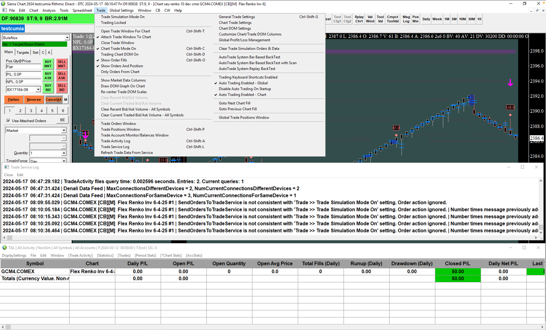 Sierra Chart Support - Engineering Level Your definitive source for support. Other responses are from users. Try to keep your questions brief and to the point. Be aware of support policy: https://www.sierrachart.com/index.php?l=PostingInformation.php#GeneralInformation For the most reliable, advanced, and zero cost futures order routing, use the Teton service: Sierra Chart Teton Futures Order Routing Date Time Of Last Edit: 2024-05-17 17:44:53
