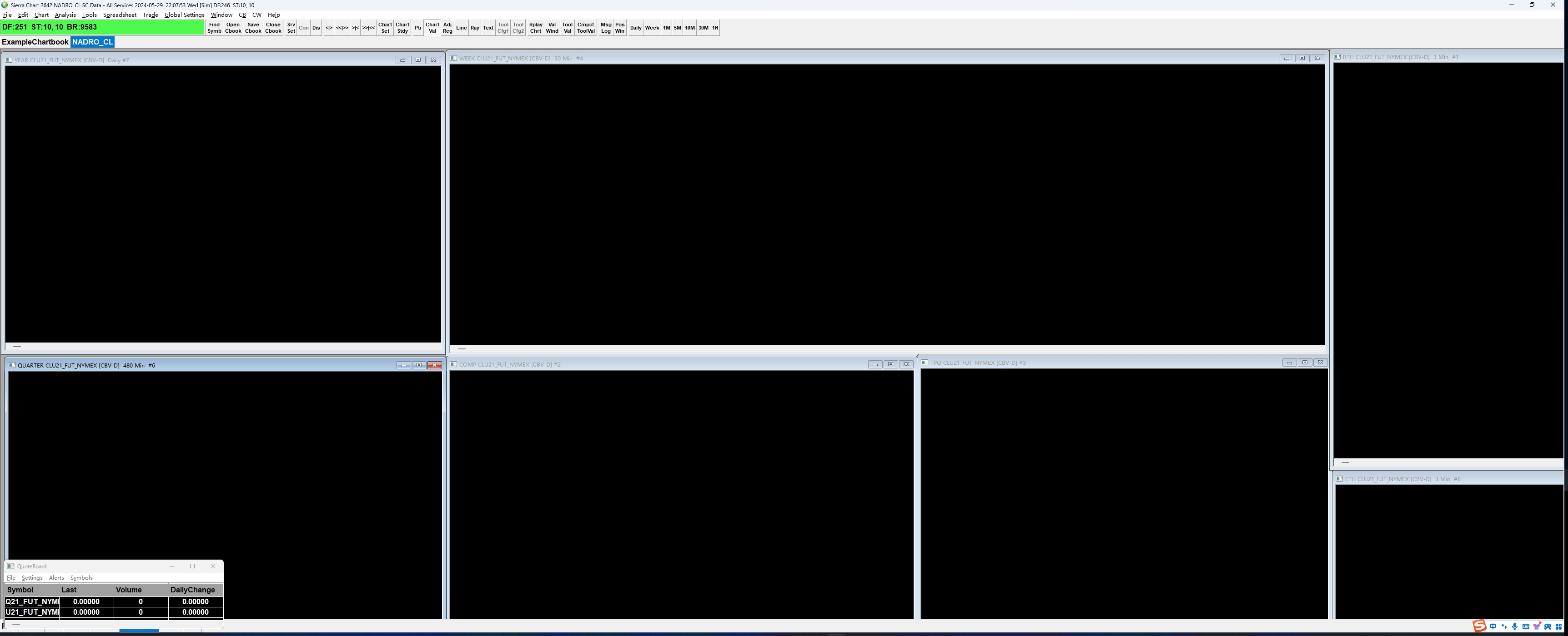Our servers show that your "Current Selected Service" is set to "Interactive Brokers". As such, the symbols in that chartbook are not correct for that service. Select "Edit >> Translate Symbols to Current Service" in order to update the symbols for the chartbook to what is needed for Interactive Brokers.