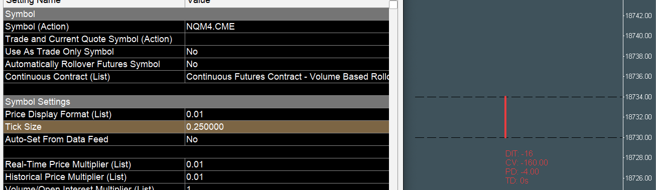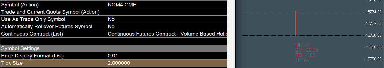 This is not considered an error. You have change the Tick Size and the calculation is absolutely correct. There is no error here at all. Sierra Chart Support - Engineering Level Your definitive source for support. Other responses are from users. Try to keep your questions brief and to the point. Be aware of support policy: https://www.sierrachart.com/index.php?l=PostingInformation.php#GeneralInformation For the most reliable, advanced, and zero cost futures order routing, use the Teton service: Sierra Chart Teton Futures Order Routing |