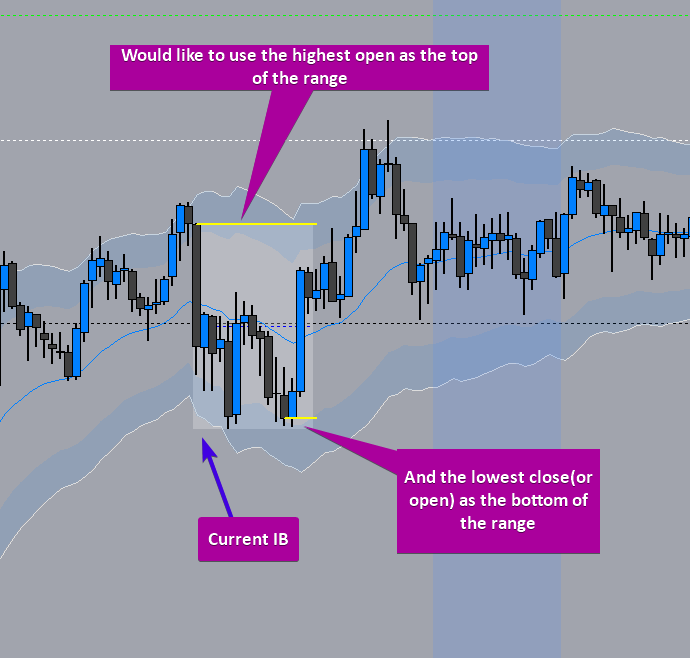 Hello, I'm really happy with the intraday option of the IB indicator, limiting the drawing to the specific IB period. I was wondering if there was a way to use the highest open or close and lowest open or close in the calculation of the range and extension, versus the highest high/highest low? Thank you. |