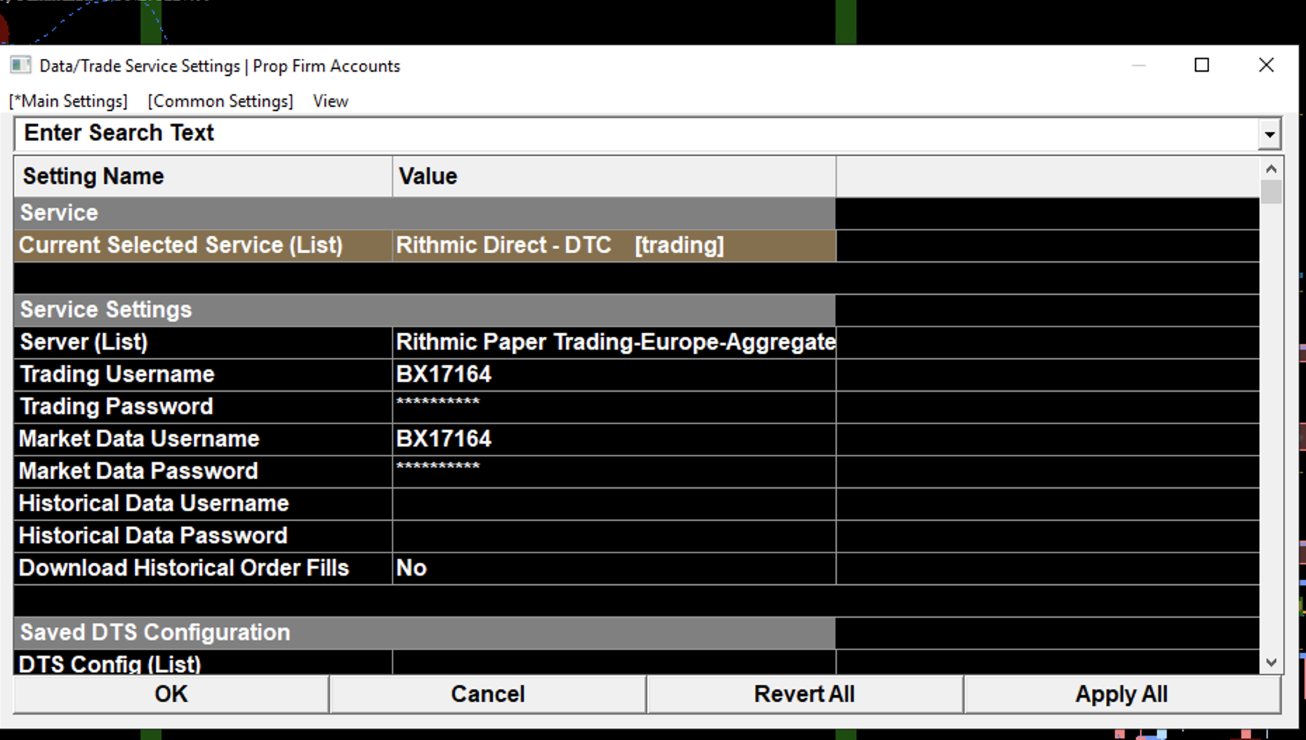 thanks Support. So I tried to setup following the instruction. The main installtion where it using data feed from Denali exchange works as expected. However the one from Bulenox trading firm seem can not get realtime data. Here is my screenshot of setting Here is logs from MessageS: 2024-06-13 08:11:33.063 | Rithmic Direct - DTC (Data) | Disconnected from the server. 2024-06-13 08:11:33.063 | Rithmic Direct - DTC (Data) | Data feed disconnected. Will reconnect in 2 seconds. 2024-06-13 08:11:35.056 | Rithmic Direct - DTC | Using server connection: Rithmic Paper Trading-Europe-Aggregated 2024-06-13 08:11:35.056 | Rithmic Direct - DTC (Data) | Connecting to the server rsc-ie.rithmic.com. Port 40803 2024-06-13 08:11:35.057 | DTC Client socket (3) | Creating socket. Using TLS 1.2. 2024-06-13 08:11:35.057 | DTC Client socket (3) | New receive buffer size: 0 2024-06-13 08:11:35.057 | DTC Client socket (3) | Connecting to IP: 18.202.238.239. 2024-06-13 08:11:35.073 | Rithmic Direct - DTC (Data) | Network connection to server complete. 2024-06-13 08:11:35.073 | Rithmic Direct - DTC (Data) | Starting socket receive thread. 2024-06-13 08:11:35.073 | Rithmic Direct - DTC (Data) | Setting DTC encoding to Binary 2024-06-13 08:11:35.073 | Rithmic Direct - DTC (Data) | Sending logon request message. 2024-06-13 08:11:35.225 | Rithmic Direct - DTC (Data) | Received logon response. 2024-06-13 08:11:35.225 | Rithmic Direct - DTC (Data) | Server Name: . 2024-06-13 08:11:35.225 | Rithmic Direct - DTC (Data) | Server protocol version: 8. Client protocol version: 8 2024-06-13 08:11:35.225 | Rithmic Direct - DTC (Data) | Successfully connected. 2024-06-13 08:11:35.225 | Rithmic Direct - DTC (Data) | Trading is not supported. 2024-06-13 08:11:35.225 | Rithmic Direct - DTC (Data) | Symbol and Exchange Delimiter: . 2024-06-13 08:11:35.225 | Rithmic Direct - DTC (Data) | MarketDepthIsSupported: 1 2024-06-13 08:11:35.225 | Rithmic Direct - DTC | Using primary service for historical data for GCQ24-COMEX 2024-06-13 08:11:35.225 | Historical data service client indicated that downloads are not enabled. Symbol: GCQ24-COMEX. Data Type: Intraday data. 2024-06-13 08:11:35.225 | Historical data download ID 358 not found when removing ID from outstanding request set. 2024-06-13 08:11:35.225 | Real-time Intraday chart data file updates started for GCQ24-COMEX 2024-06-13 08:11:35.225 | Intraday chart data file opened for GCQ24-COMEX 2024-06-13 08:11:35.225 | Rithmic Direct - DTC (Data) | Restarting real-time data updates for symbol: GCQ24-COMEX 2024-06-13 08:11:35.242 | DTC Client socket (3) | Socket gracefully closed by remote side. 2024-06-13 08:11:35.247 | DTC Client socket (3) | CloseSocket call. 2024-06-13 08:11:35.247 | Rithmic Direct - DTC (Data) | Waiting for socket receive thread to end 2024-06-13 08:11:35.247 | DTC Client socket (3) | Graceful close received or receive error. Shutdown complete. Closing socket now. 2024-06-13 08:11:35.247 | DTC Client socket (3) | Closed. 2024-06-13 08:11:35.248 | DTC Client socket (0) | CloseSocket call. 2024-06-13 08:11:35.248 | Rithmic Direct - DTC (Data) | Disconnected from the server. 2024-06-13 08:11:35.248 | Rithmic Direct - DTC (Data) | Data feed disconnected. Will reconnect in 2 seconds. 2024-06-13 08:11:37.228 | Chart: GCQ24-COMEX/MGCQ4.COMEX [CB-D][M] Flex Renko Inv 16-16-32 #3 | Study: SKB Trading System | Parsing trading ranges 2024-06-13 08:11:37.228 | Chart: GCQ24-COMEX/MGCQ4.COMEX [CB-D][M] Flex Renko Inv 16-16-32 #3 | Study: SKB Trading System | Parsed range: 05:00 to 09:00 2024-06-13 08:11:37.248 | Rithmic Direct - DTC | Using server connection: Rithmic Paper Trading-Europe-Aggregated 2024-06-13 08:11:37.248 | Rithmic Direct - DTC (Data) | Connecting to the server rsc-ie.rithmic.com. Port 40803 2024-06-13 08:11:37.249 | DTC Client socket (3) | Creating socket. Using TLS 1.2. 2024-06-13 08:11:37.249 | DTC Client socket (3) | New receive buffer size: 0 2024-06-13 08:11:37.249 | DTC Client socket (3) | Connecting to IP: 18.202.238.239. 2024-06-13 08:11:37.267 | Rithmic Direct - DTC (Data) | Network connection to server complete. 2024-06-13 08:11:37.267 | Rithmic Direct - DTC (Data) | Starting socket receive thread. 2024-06-13 08:11:37.267 | Rithmic Direct - DTC (Data) | Setting DTC encoding to Binary 2024-06-13 08:11:37.267 | Rithmic Direct - DTC (Data) | Sending logon request message. 2024-06-13 08:11:37.424 | Rithmic Direct - DTC (Data) | Received logon response. 2024-06-13 08:11:37.424 | Rithmic Direct - DTC (Data) | Server Name: . 2024-06-13 08:11:37.424 | Rithmic Direct - DTC (Data) | Server protocol version: 8. Client protocol version: 8 2024-06-13 08:11:37.424 | Rithmic Direct - DTC (Data) | Successfully connected. 2024-06-13 08:11:37.424 | Rithmic Direct - DTC (Data) | Trading is not supported. 2024-06-13 08:11:37.424 | Rithmic Direct - DTC (Data) | Symbol and Exchange Delimiter: . 2024-06-13 08:11:37.424 | Rithmic Direct - DTC (Data) | MarketDepthIsSupported: 1 2024-06-13 08:11:37.424 | Rithmic Direct - DTC | Using primary service for historical data for GCQ24-COMEX 2024-06-13 08:11:37.424 | Historical data service client indicated that downloads are not enabled. Symbol: GCQ24-COMEX. Data Type: Intraday data. 2024-06-13 08:11:37.424 | Historical data download ID 359 not found when removing ID from outstanding request set. 2024-06-13 08:11:37.424 | Real-time Intraday chart data file updates started for GCQ24-COMEX 2024-06-13 08:11:37.424 | Intraday chart data file opened for GCQ24-COMEX 2024-06-13 08:11:37.424 | Rithmic Direct - DTC (Data) | Restarting real-time data updates for symbol: GCQ24-COMEX 2024-06-13 08:11:37.443 | DTC Client socket (3) | Socket gracefully closed by remote side. 2024-06-13 08:11:37.443 | DTC Client socket (3) | CloseSocket call. 2024-06-13 08:11:37.443 | Rithmic Direct - DTC (Data) | Waiting for socket receive thread to end 2024-06-13 08:11:37.443 | DTC Client socket (3) | Graceful close received or receive error. Shutdown complete. Clos