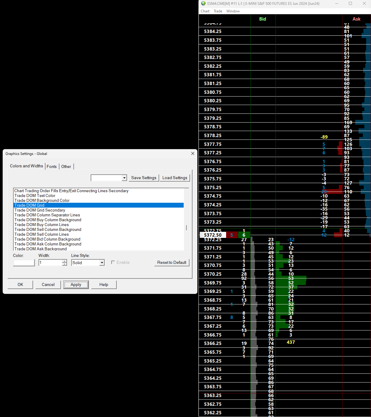 I would like to hide/disable the horizontal grid in the Trade DOM. (see screenshot) I already figured out how to change its color, but how can I remove this grid? |