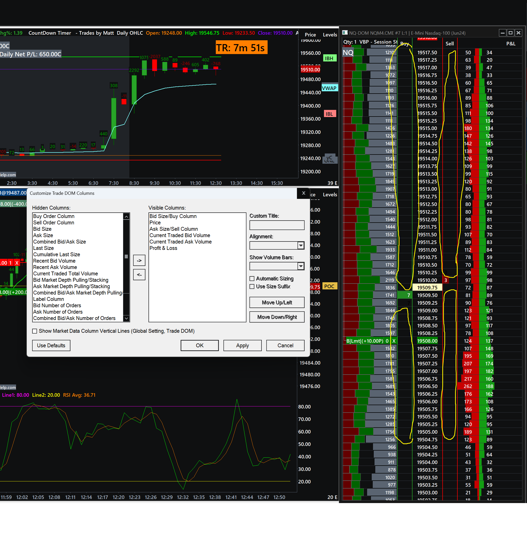I've tried searching everywhere to figure out this problem. I have package 12 w/ market depth for non-professional, but still cannot see upcoming limit orders and where the volume is at each price level. Please see the DOM on my chart below where the "Buy" and "Sell" is not showing the market depth in these columns. Can you look at my chartbook to see why it's not showing for me or fix it? https://www.sierrachart.com/image.php?Image=1718214949128.png |