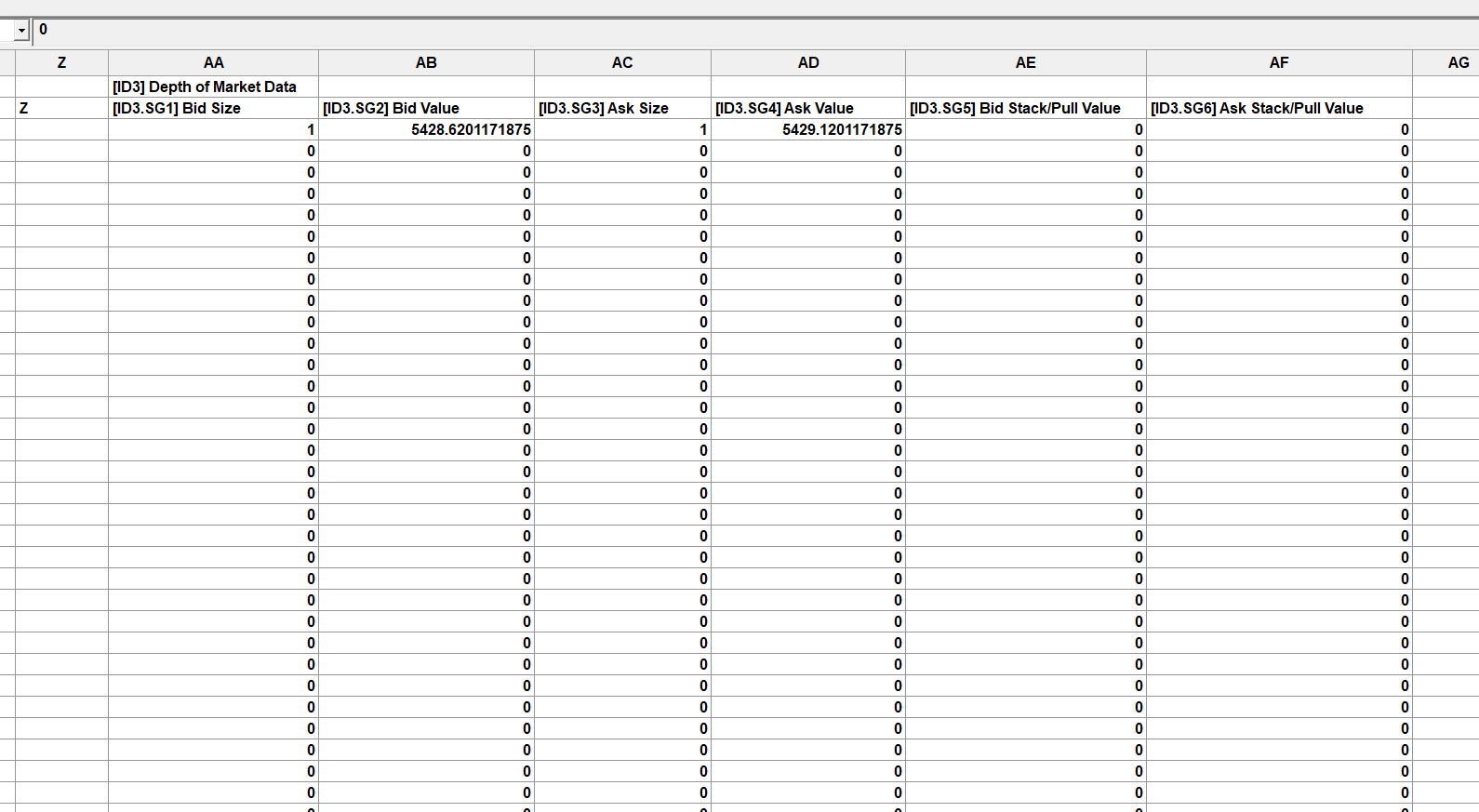 I would like to create a automated trading in spreadsheet using the DOM data volume(limit order) per price level but unfortunately only 1 price level appeared and volume =1.