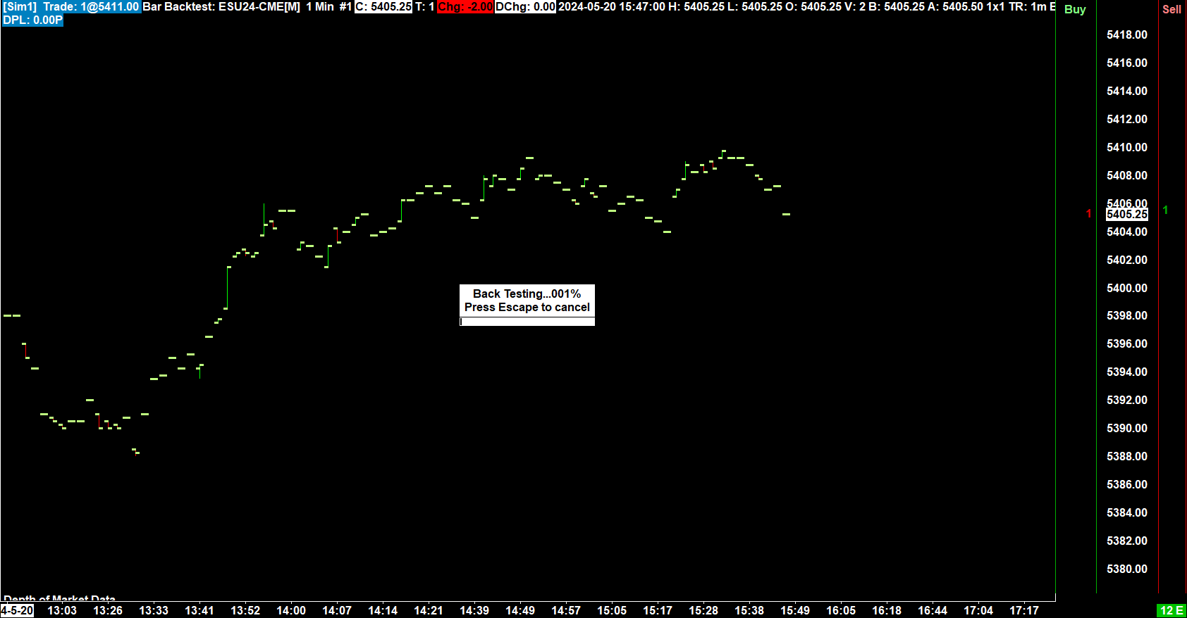 You have to have the market depth data saved in order for it to be available during a backtest/replay. Refer to the following: Replaying Charts: Replaying of Market Depth Data For the most reliable, advanced, and zero cost futures order routing, use the Teton service: Sierra Chart Teton Futures Order Routing |