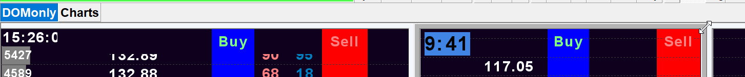 When I start Sierra, the Region 1 row of my Trade DOMs are hidden, please see first image where you can just see the bottom edge of a blue clock study on the second DOM. The rest is "hidden". If I simply click on the border of a DOM window frame and activate the resize double arrow cursor, then the hidden content appears (see second image - region 1 in the first DOM is now visible, and the clock study is the second DOM is visible. Note the cursor top right of second DOM). I do not actually have to resize at all. How can I ensure that the region 1 row is displayed when I start Sierra Chart? Date Time Of Last Edit: 2024-06-17 07:45:40